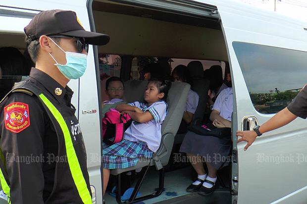 The issue of students being "forgotten" and left in locked buses after they arrive at their destination was highlighted during a meeting between Mr Watthana and project initiator Siam Cement Group which is also sponsoring the million-baht-plus scheme.