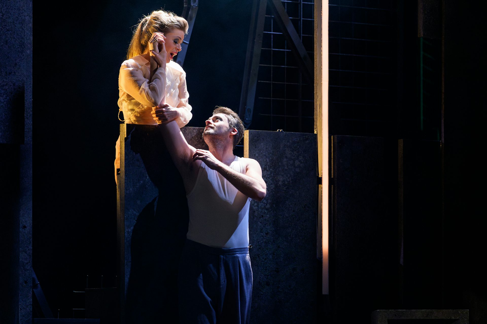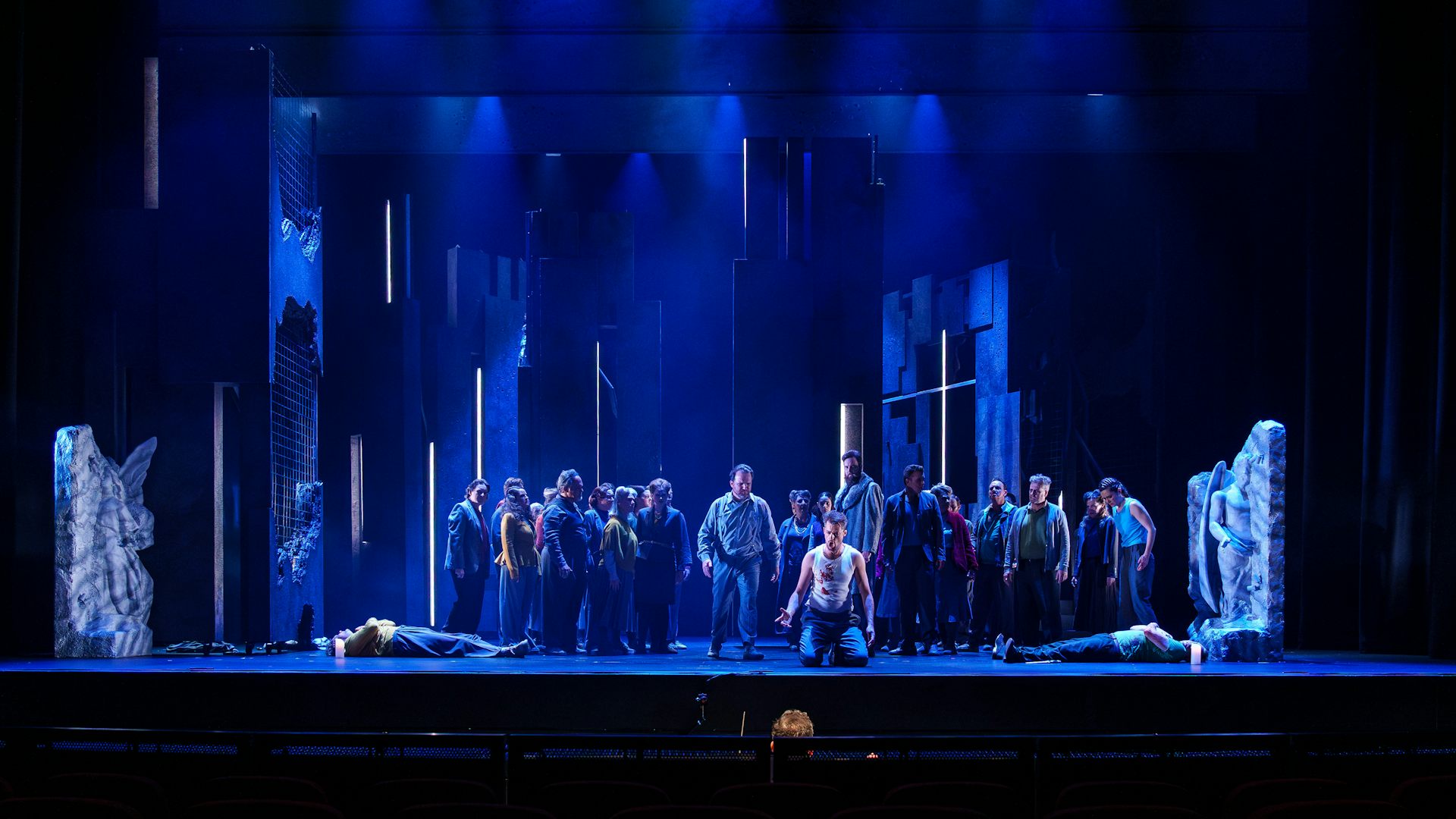 The State Opera chorus is kept busy by the director working with movement coordinator Jo Stone, with much movement choreographed upstage to contrast with the action between the lovers developing downstage.