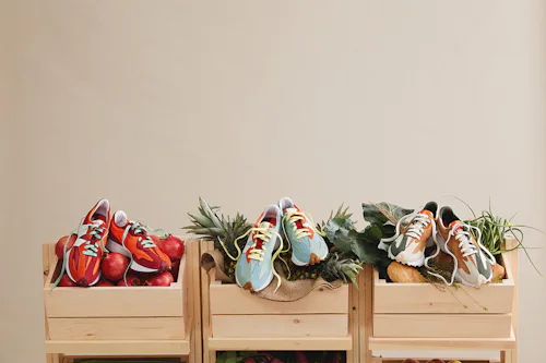 The three sneakers are named for the produce that’s inspired them: “Pineapple,” “Pomegranate,” and “Wheat.” Each takes on a colorful palette informed by their namesake — although the “Pineapple” version is less overt — and features a tongue graphic of the respective plant. If not tasty, then they’re certainly tasteful.