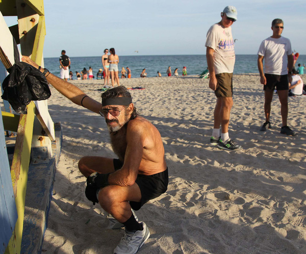 MIAMI _ Laura Lee Huttenbach noticed on her regular South Beach runs that she would always pass by an older man with long wavy hair, a salt-and-pepper beard, and jet black running shorts.