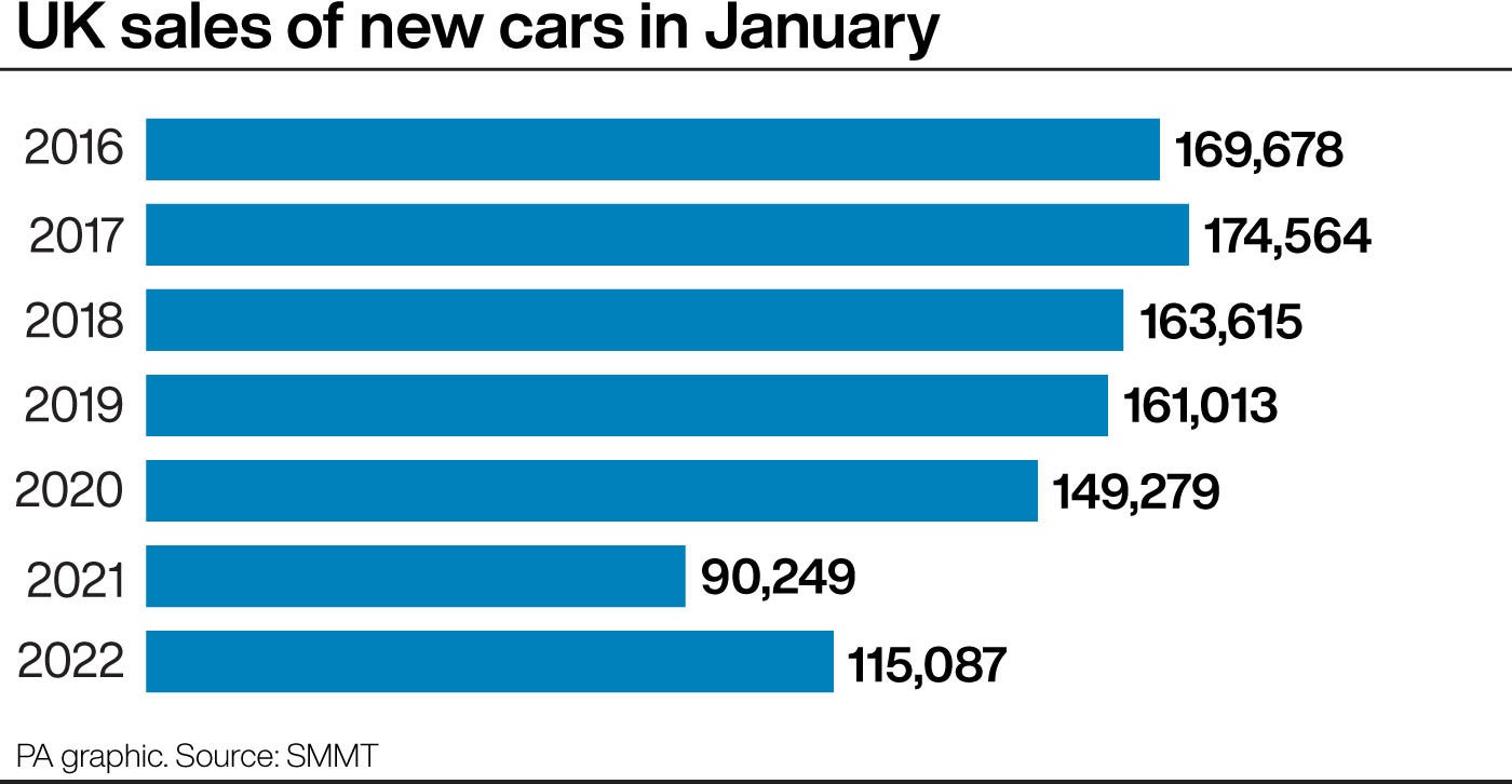 The Society of Motor Manufacturers and Traders (SMMT) said 115,087 new cars were registered in the UK in January.
