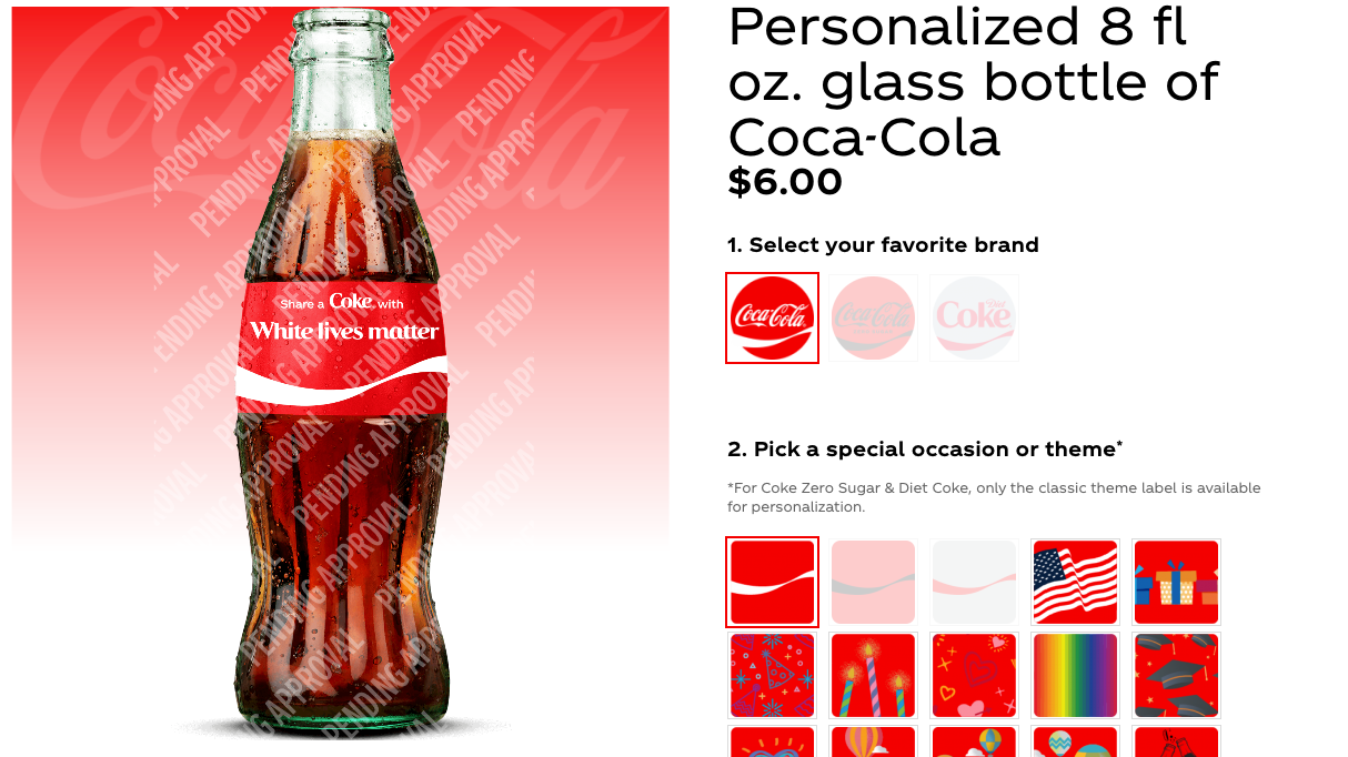 Some names with political implications were not accepted either these included ‘Trump,’ ‘Biden’, ‘Obama,’ ‘Putin’ and ‘Osama.’ ‘Boris Johnson’, ‘Trudeau,’ and ‘Bolsanaro’ did make it through the filter. However some of these do come with a ‘Pending Approval’ message which would indicate that Coca-Cola haven’t made a decision on these terms yet.