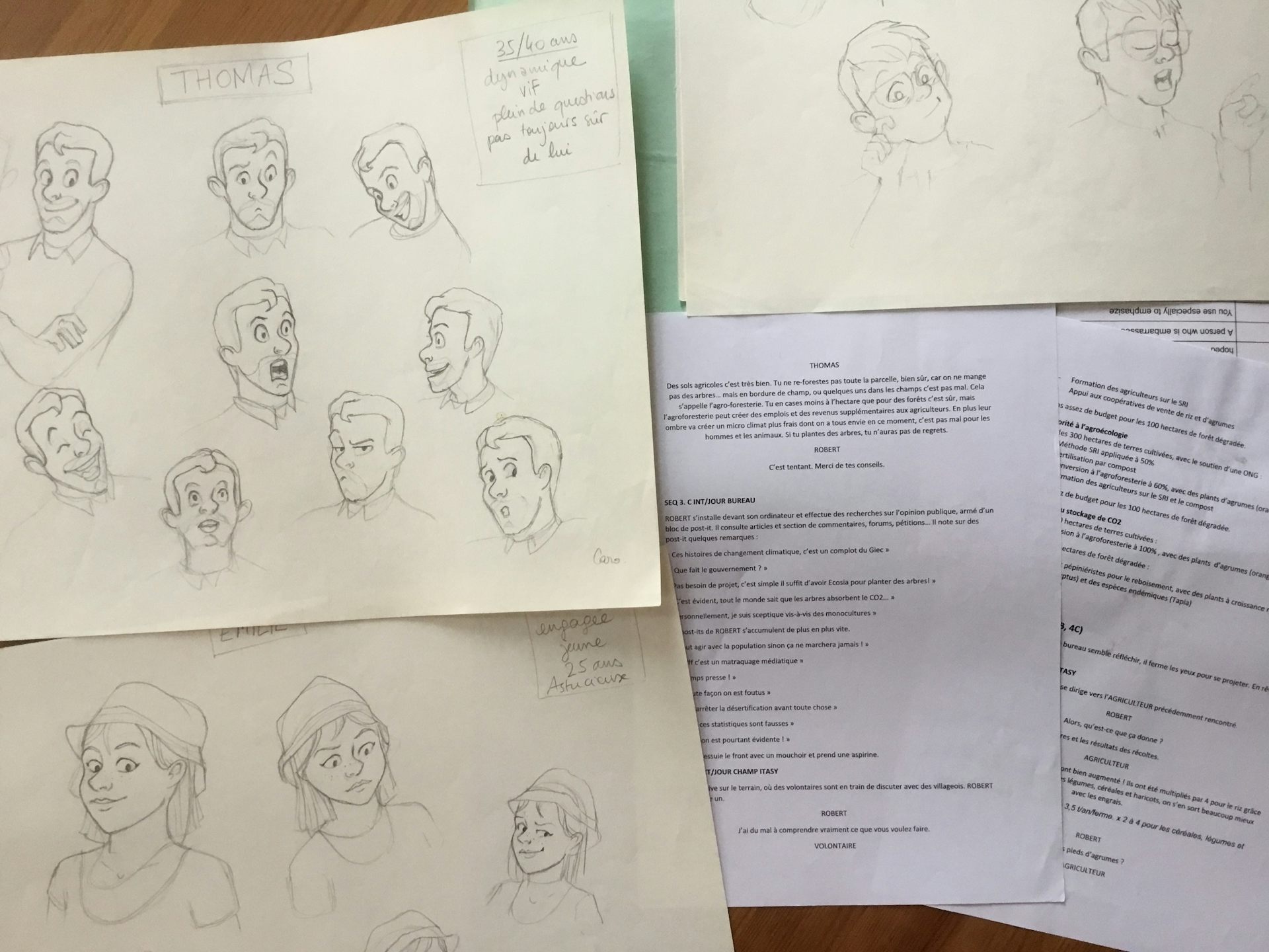 Illustrator Caroline Gaujour began by adapting our interactive scenario to storyboards, with the help of reference photos from the field. She then outlined the different characters, before turning her attention to 35 pages of drawings.
