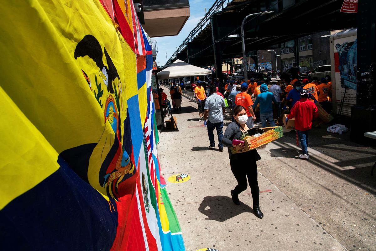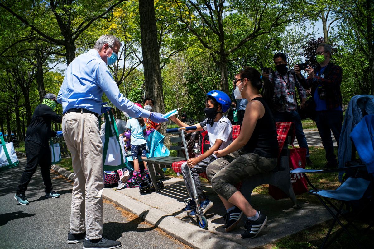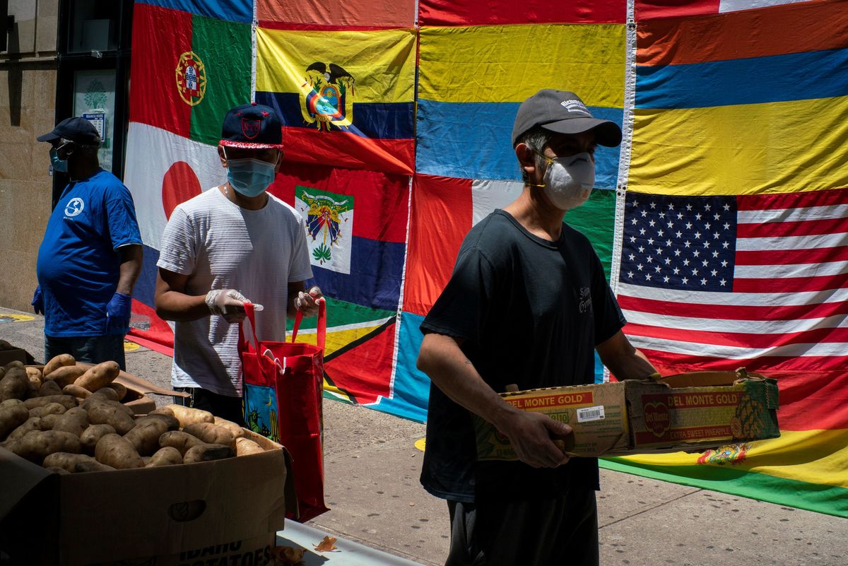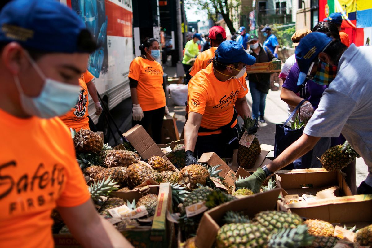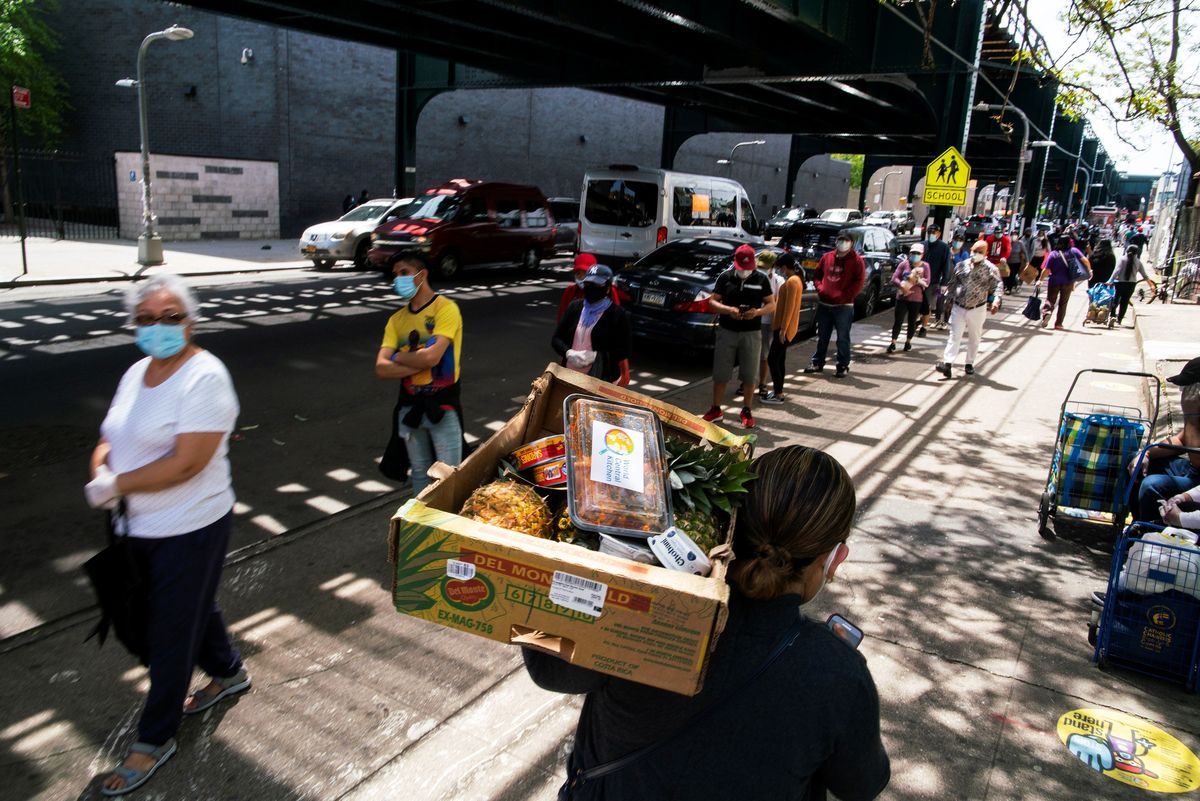 FILE PHOTO: New York Governor Andrew Cuomo holds his daily briefing at New York Medical College during the outbreak of the coronavirus disease (COVID-19) in Valhalla, New York, U.S., May 7, 2020. REUTERS/Mike Segar/File PhotoNew York City Mayor Bill De Blasio gives away face masks to people for using on public spaces to prevent the spread of coronavirus disease (COVID-19) in the Queens borough of New York City, U.S., May 16, 2020 REUTERS/Eduardo MunozSchool safety Police Department member gives away face masks to people for using on public spaces to prevent the spread of coronavirus disease (COVID-19) in the Queens borough of New York City, U.S., May 16, 2020 REUTERS/Eduardo MunozNew York Police Department officers patrol the Flushing Meadows Corona Park during the outbreak of the coronavirus disease (COVID-19) in Queens, New York City, New York, U.S., May 16, 2020 REUTERS/Eduardo MunozA child rides his bike as a social distance banner is seen in the Flushing Meadows Corona Park during the outbreak of the coronavirus disease (COVID-19) in Queens, New York City, New York, U.S., May 16, 2020 REUTERS/Eduardo MunozPeople queue to receive some food donated by Alianza Ecuatoriana International at a food pantry during the outbreak of the coronavirus disease (COVID-19) in the Corona section of Queens, New York City, New York, U.S., May 16, 2020 REUTERS/Eduardo MunozA woman carries food donated by Alianza Ecuatoriana International at a food pantry during the outbreak of the coronavirus disease (COVID-19) in the Corona section of Queens, New York City, New York, U.S., May 16, 2020 REUTERS/Eduardo MunozA woman carries food donated by Alianza Ecuatoriana International at a food pantry during the outbreak of the coronavirus disease (COVID-19) in the Corona section of Queens, New York City, New York, U.S., May 16, 2020 REUTERS/Eduardo MunozPeople receive some food donated by Alianza Ecuatoriana International at a food pantry during the outbreak of the coronavirus disease (COVID-19) in the Corona section of Queens, New York City, New York, U.S., May 16, 2020 REUTERS/Eduardo MunozVolunteers organize food to be donated by Alianza Ecuatoriana International at a food pantry during the outbreak of the coronavirus disease (COVID-19) in the Corona section of Queens, New York City, New York, U.S., May 16, 2020 REUTERS/Eduardo MunozPeople queue during a food distribution during the outbreak of the coronavirus disease (COVID-19) in the Corona section of Queens, New York City, New York, U.S., May 16, 2020 REUTERS/Eduardo Munoz