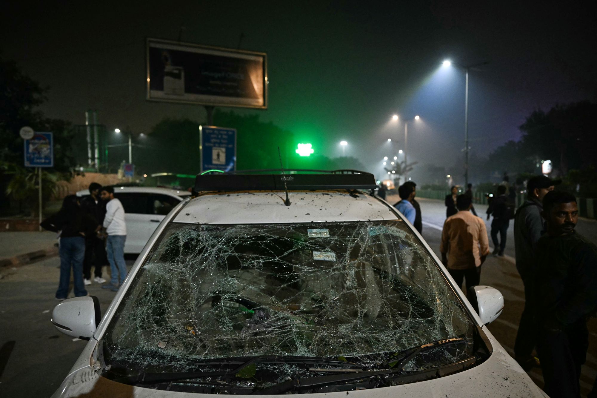 The vehicle was a Hyundai i20 car, which was moving and carrying three people, Sanjay Tyagi, spokesperson for Delhi City Police, told the BBC.