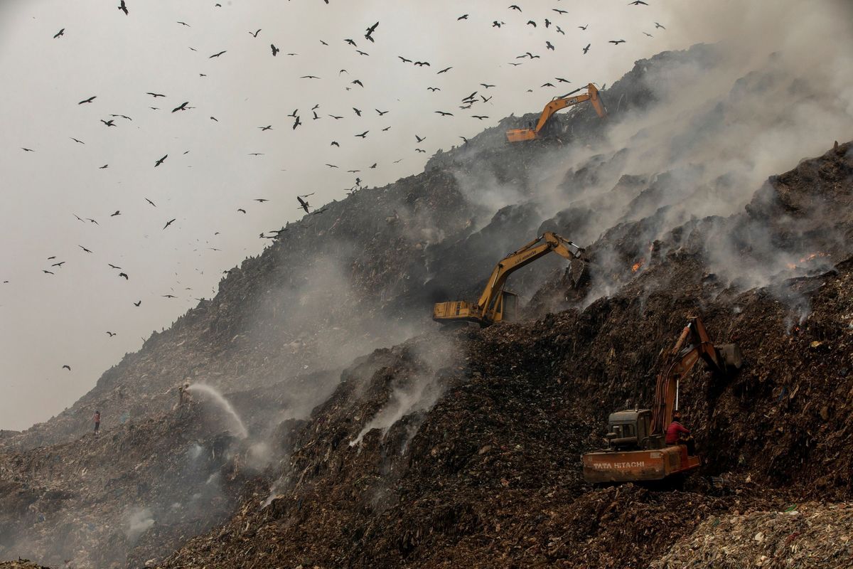 On Wednesday, in the Ghazipur area, another mountainous waste landfill site, rising to over 60 metres (197 ft), caught fire, releasing poisonous smoke into the atmosphere.