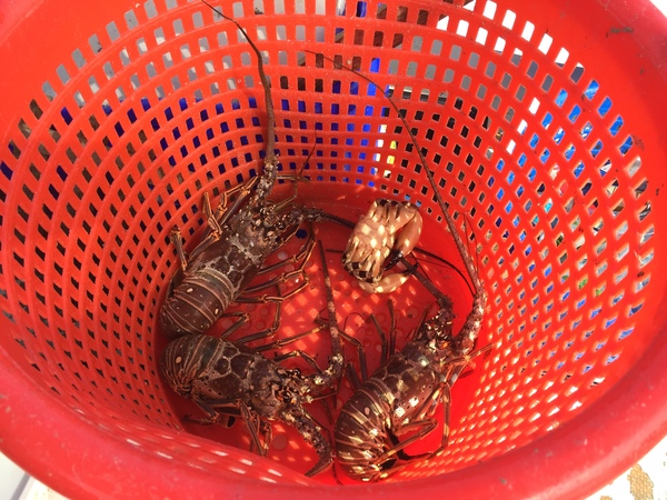 On a sunny December afternoon, Menta took me out on the water for a closer look at where the area's seafood bounty comes from. Several miles off the coast, we caught up with commercial fisherman Zane Osborn as he was hauling lobster and crab traps out of the Gulf of Mexico.