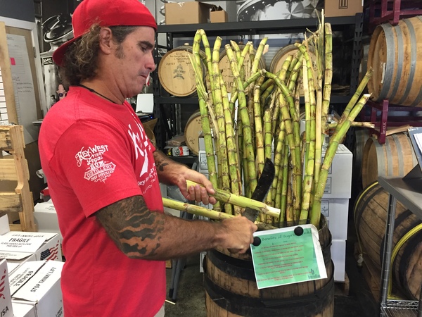 Menta walks guests through the rum-making process, stopping to squeeze juice out of fresh Florida sugar cane _ no molasses used here, thank you very much. He points to the bubbling fermentation tanks where yeast is gobbling up the sugar, turning it into alcohol.
