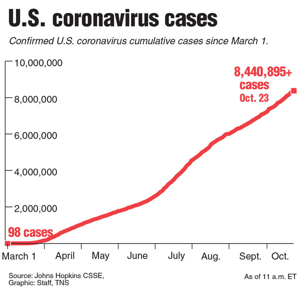 The team also determined that if the U.S. follows this path, by election day, five states would experience a COVID-19 mortality rate of at least 8 deaths per 1 million each day. (That's about how bad things were when most states shut down their economies and issued stay-at-home orders in the spring.) Another 35 states would exceed that threshold by Feb. 28.