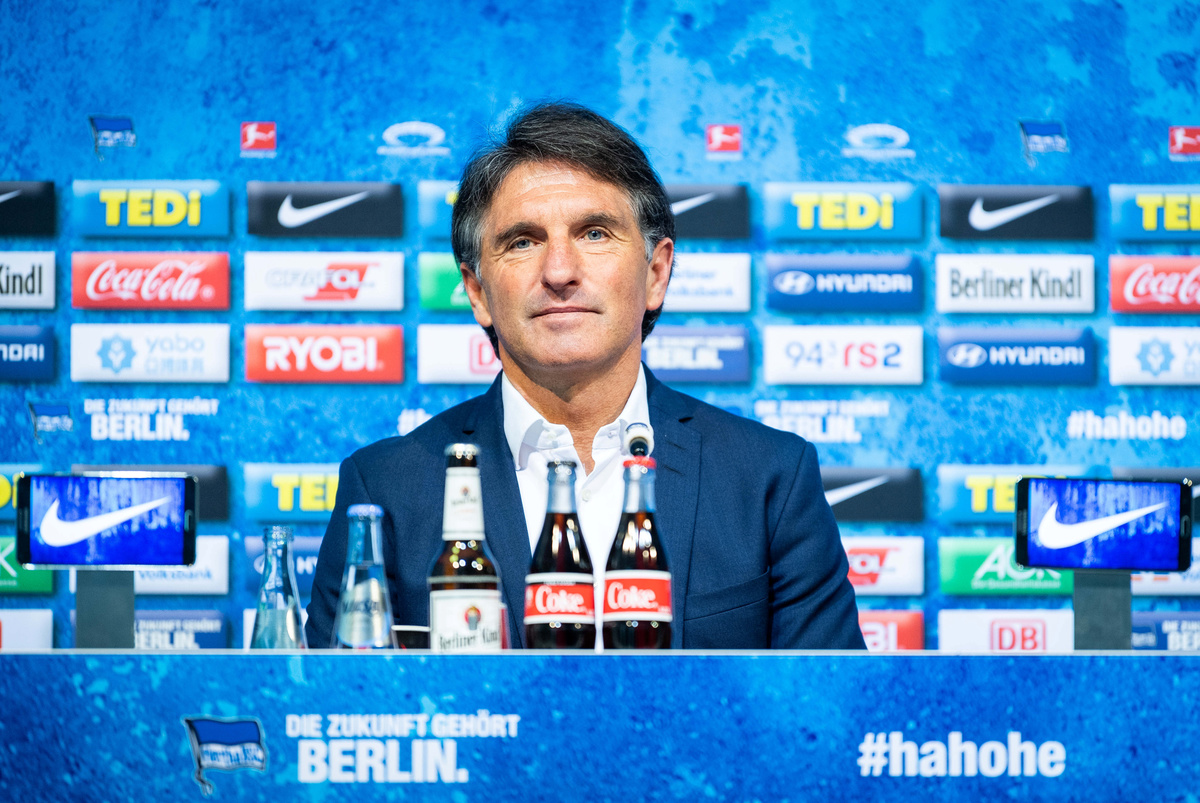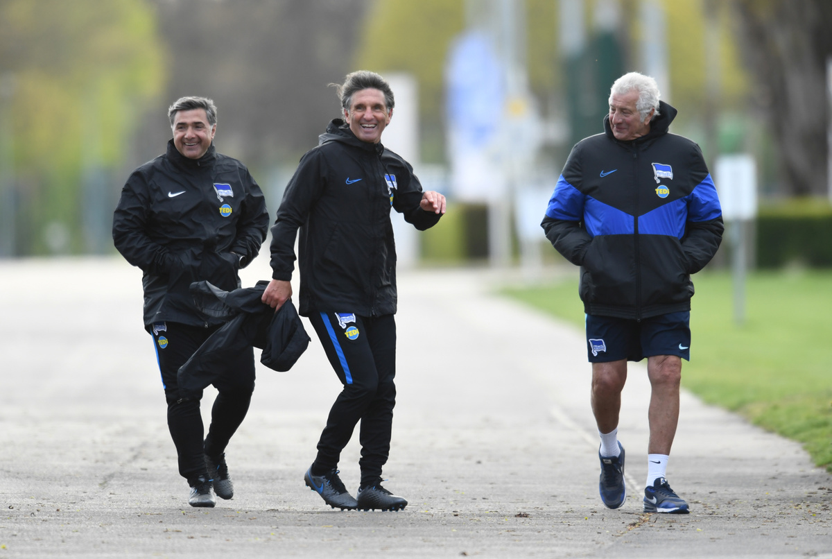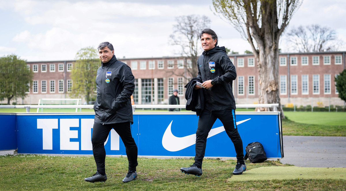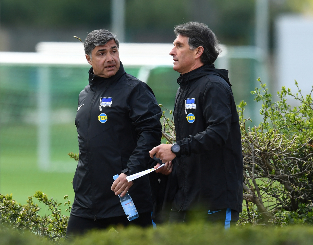 Soccer Football - Hertha BSC Training - Schenkendorfplatz, Berlin, Germany - April 13, 2020 New Hertha BSC coach Bruno Labbadia and assistant coach Eddy Soezer (L) during training REUTERS/Annegret HilseSoccer Football - Hertha BSC Training - Berlin, Germany - April 13, 2020 Hertha BSC coach Bruno Labbadia during training. Jan-Philipp Burmann/Hertha BSC via City-Press GmbH/Handout via Reuters Soccer Football - Hertha BSC Press Conference - Berlin, Germany - April 13, 2020 New Hertha BSC coach Bruno Labbadia and Hertha BSC Sporting director Michael Preetz pose after the press conference Jan-Philipp Burmann/Pool via REUTERSSoccer Football - Hertha BSC Press Conference - Berlin, Germany - April 13, 2020 New Hertha BSC coach Bruno Labbadia during the press conference Jan-Philipp Burmann/Pool via REUTERSSoccer Football - Hertha BSC Training - Schenkendorfplatz, Mittenwalde, Germany - April 13, 2020 New Hertha BSC coach Bruno Labbadia (R) before training REUTERS/Annegret HilseFILE PHOTO: Soccer Football - Bundesliga - Bayern Munich v VfL Wolfsburg - Allianz Arena, Munich, Germany - March 9, 2019 VfL Wolfsburg coach Bruno Labbadia before the match REUTERS/Michael Dalder DFL regulations prohibit any use of photographs as image sequences and/or quasi-video