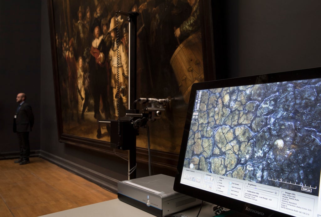 The 717-gigapixel photo allows viewers to zoom in on Captain Frans Banninck Cocq and see how the 17th-century master put the tiniest of white dots in his eyes to give life to the painting's main character. It also shows the minute cracks in his pupils, brought on by the passage of time.