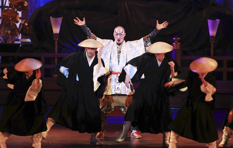 Next come tap-dancing monks and energetically dancing high school girls, before a scintillating finale. The show lacks a coherent story, but the common thread of Japan's rich cultural heritage runs through every twist and turn.