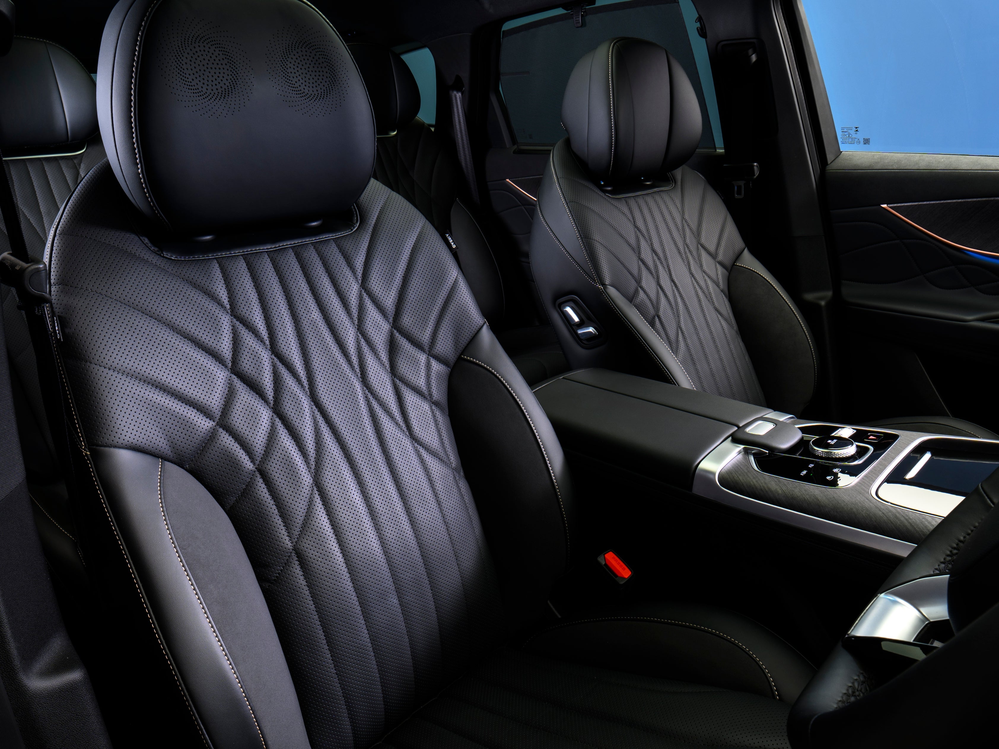 Inside, the cabin luxury features are dialed up with dual 12.3-inch displays, wireless Apple CarPlay and Android Auto and cooled wireless charging pads. There’s also a 14-speaker Sony sound system that includes speakers integrated into the headrests – navigation instructions or phone calls can be fed through them for a more personal experience for the driver.