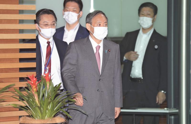He arrived at the office at about 6:40 a.m., after leaving the residence compound for House of Representatives members in Tokyo's Akasaka area. Suga walked around the premises of the Prime Minister's Office instead of taking his regular morning walk.