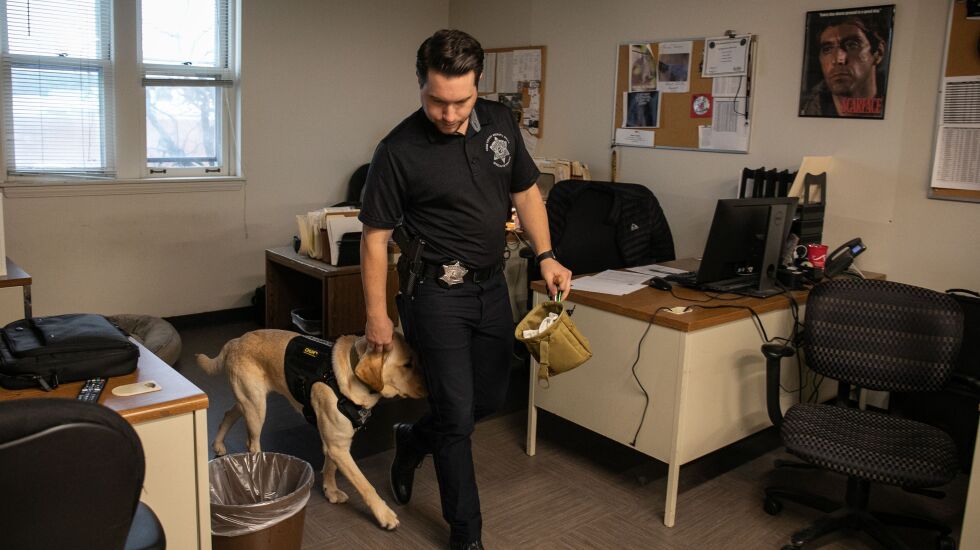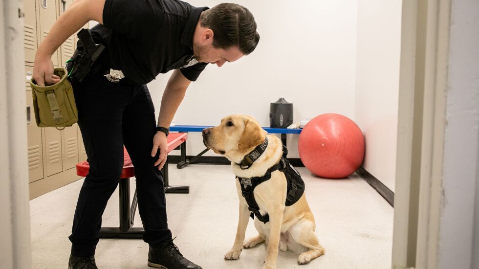 Boone, a 1-and-a-half year-old Labrador and golden retriever, is the office’s only electronic detection canine that helps investigators find devices like hard drives, cell phones and memory cards.