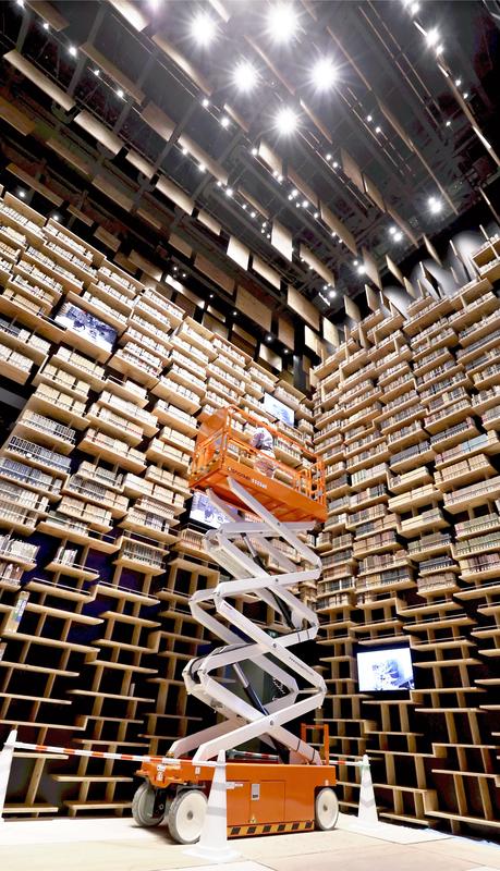 Kadokawa Culture Museum will house some 30,000 books set on 8-meter-tall bookshelves that are so high a scissor lift is being used to place texts on them. The facility, parts of which opened in August, will be open in its entirety from Nov. 6.