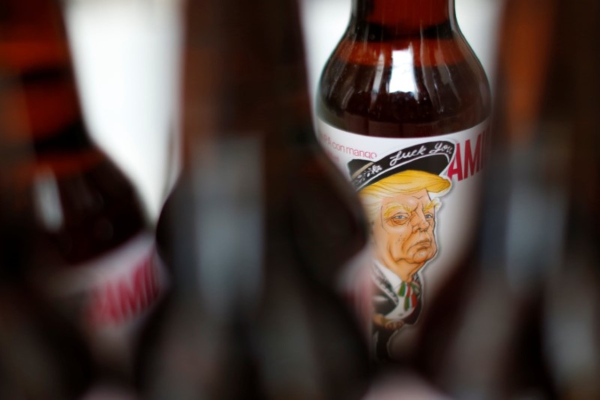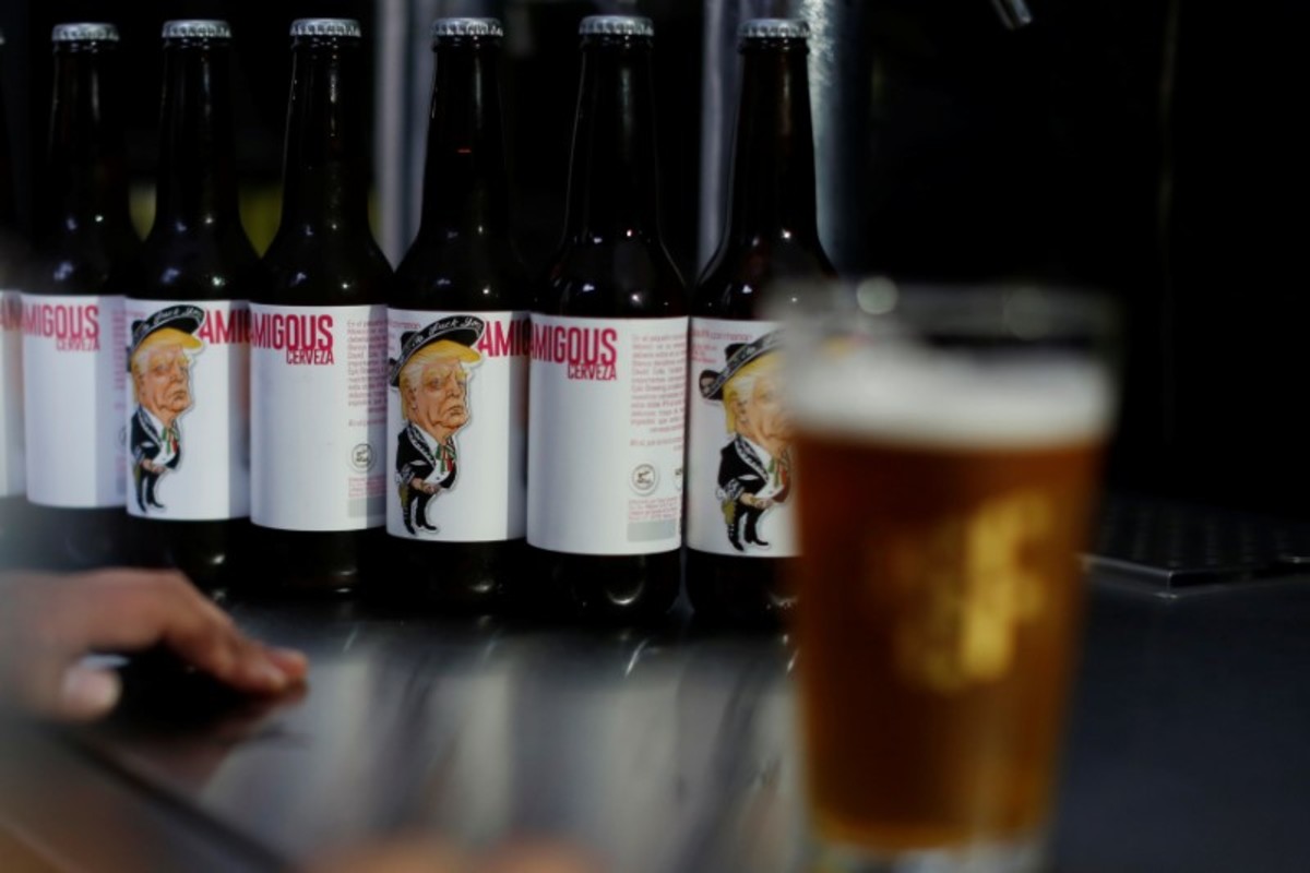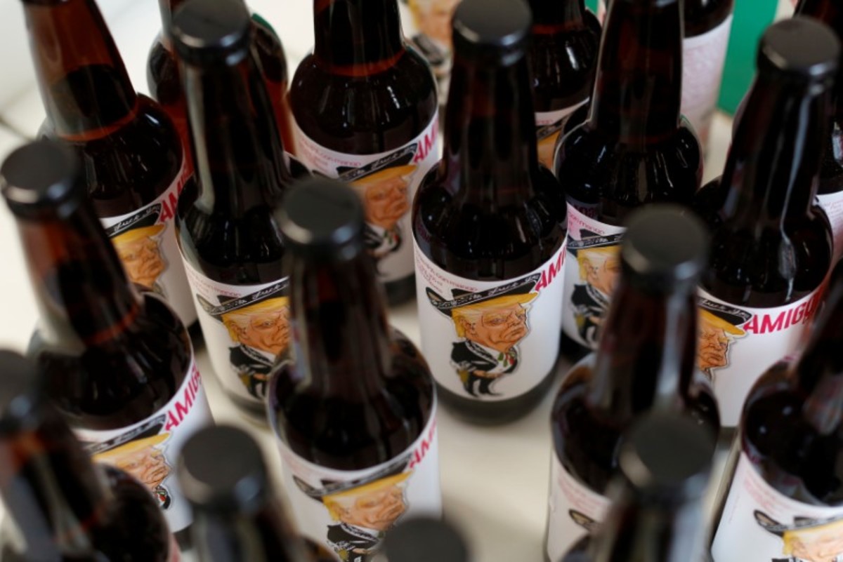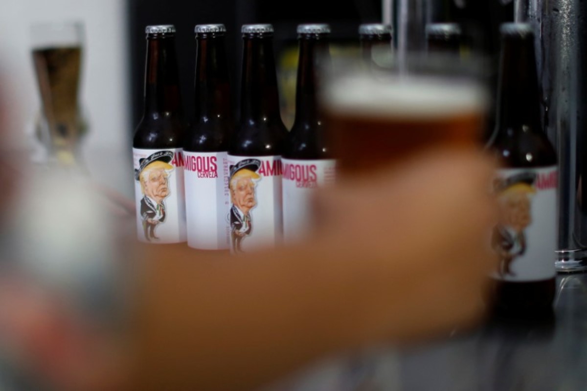 A bottle of beer named "Amigous" with an image of U.S. President Donald Trump is pictured at the Cru Cru brewery in Mexico City, Mexico, June 14, 2017. REUTERS/Carlos JassoBottles of beers named "Amigous," with images of U.S. President Donald Trump, are pictured at the Cru Cru brewery in Mexico City, Mexico, June 13, 2017. Picture taken on June 13, 2017. REUTERS/Carlos JassoBottles of beers named "Amigous," with images of U.S. President Donald Trump, are pictured at the Cru Cru brewery in Mexico City, Mexico, June 13, 2017. Picture taken on June 13, 2017. REUTERS/Carlos JassoBottles of beers named "Amigous," with images of U.S. President Donald Trump, are pictured at the Cru Cru brewery in Mexico City, Mexico, June 13, 2017. Picture taken on June 13, 2017. REUTERS/Carlos Jasso