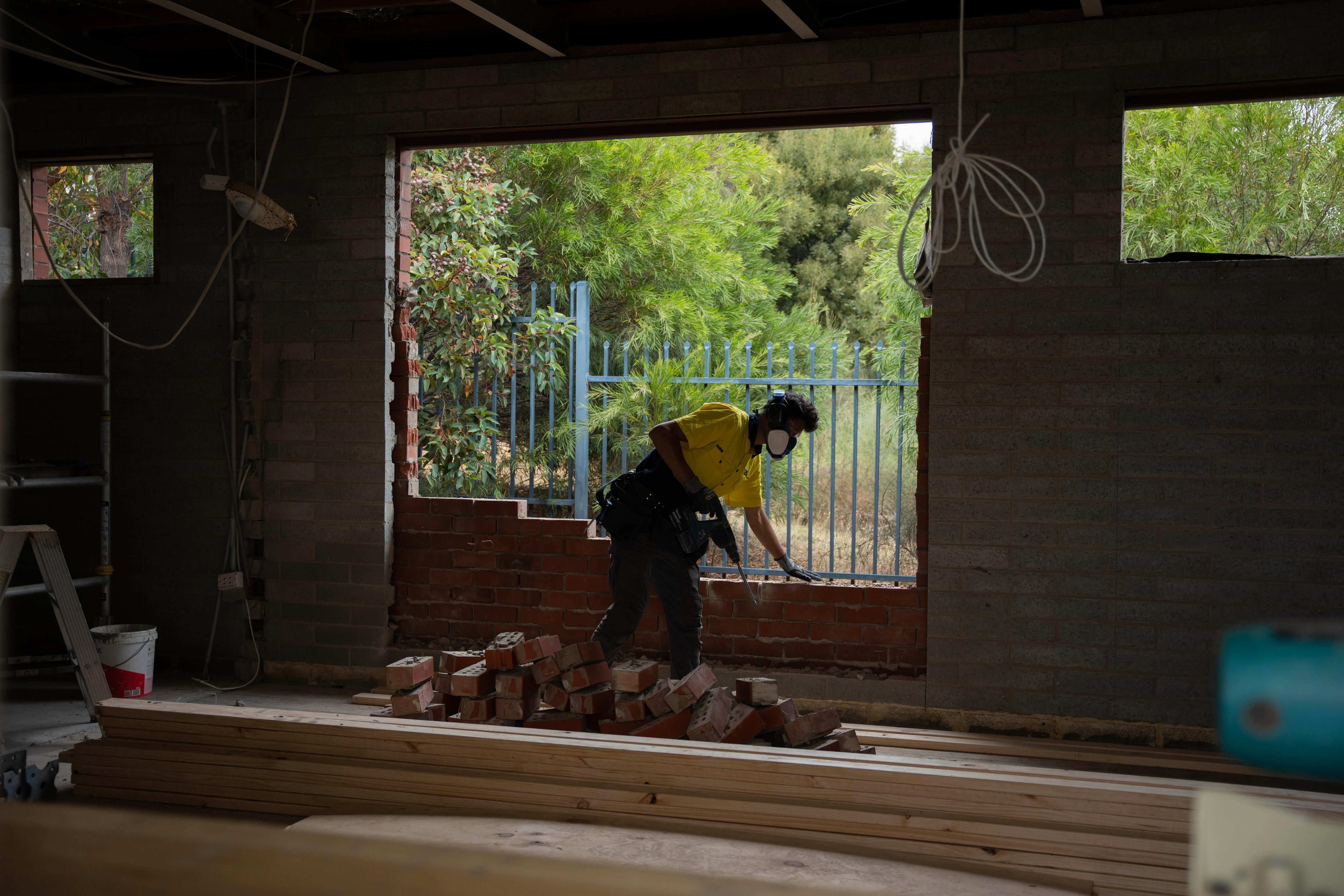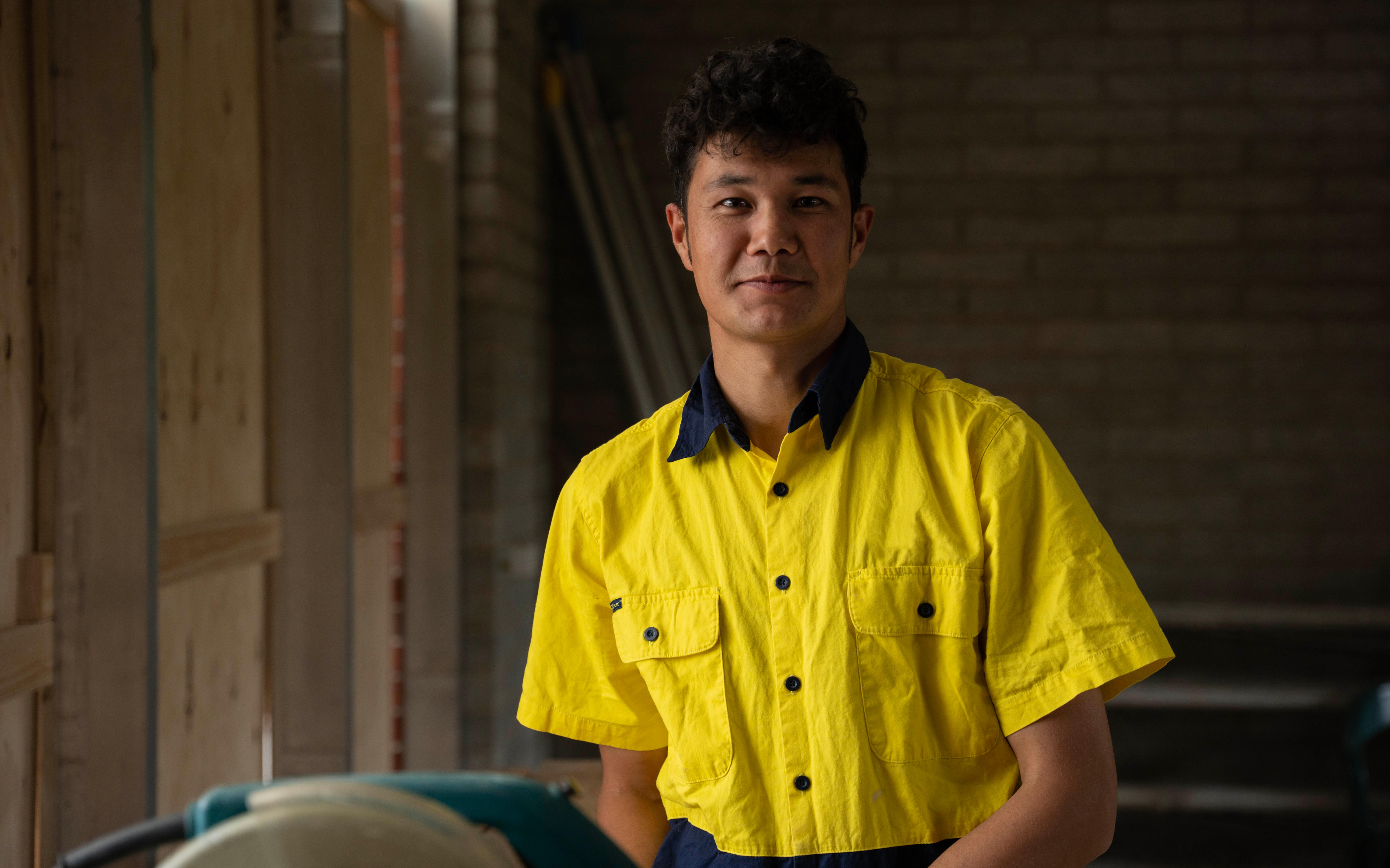 Working as an apprentice builder in Hobart's suburbs keeps his mind off the past couple of years.