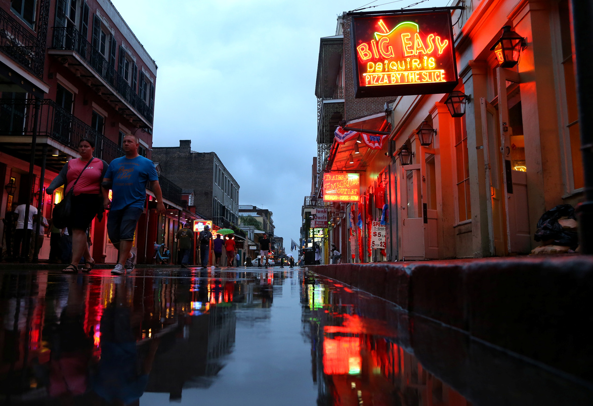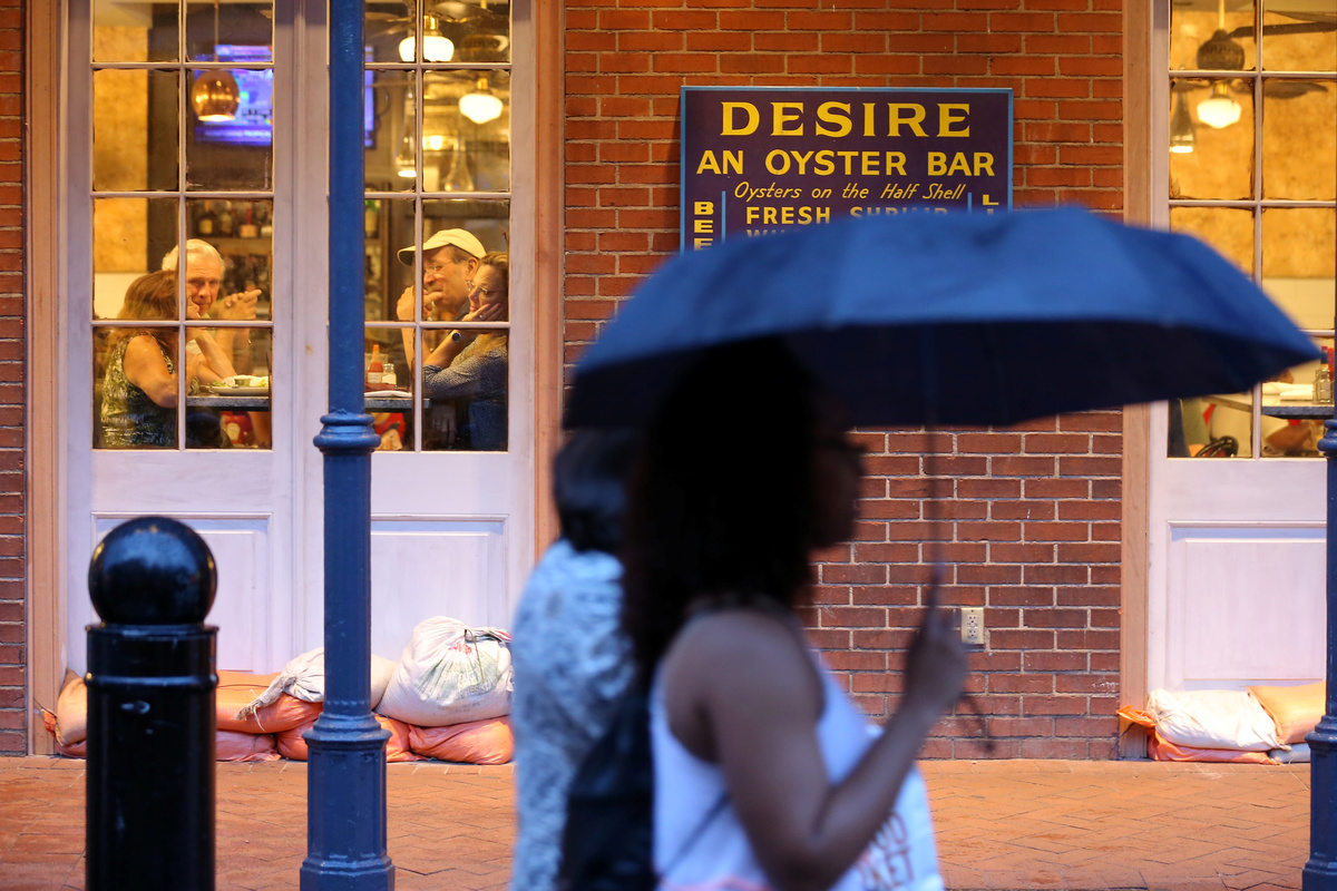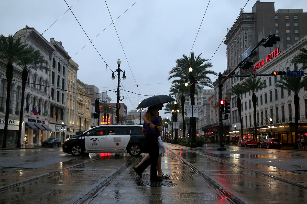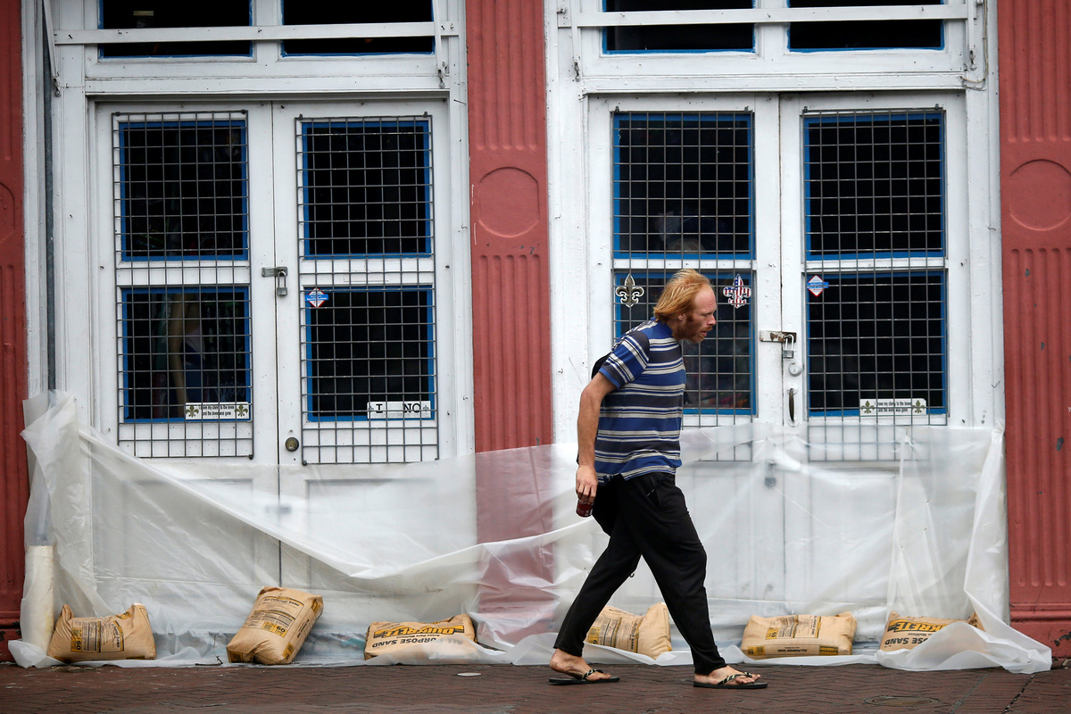 Across the city, motorists parked cars on the raised median strips of roadways, hoping the extra elevation would protect them from flood damage. Sandbags were stacked outside hotels, shops and other businesses along Canal Street.