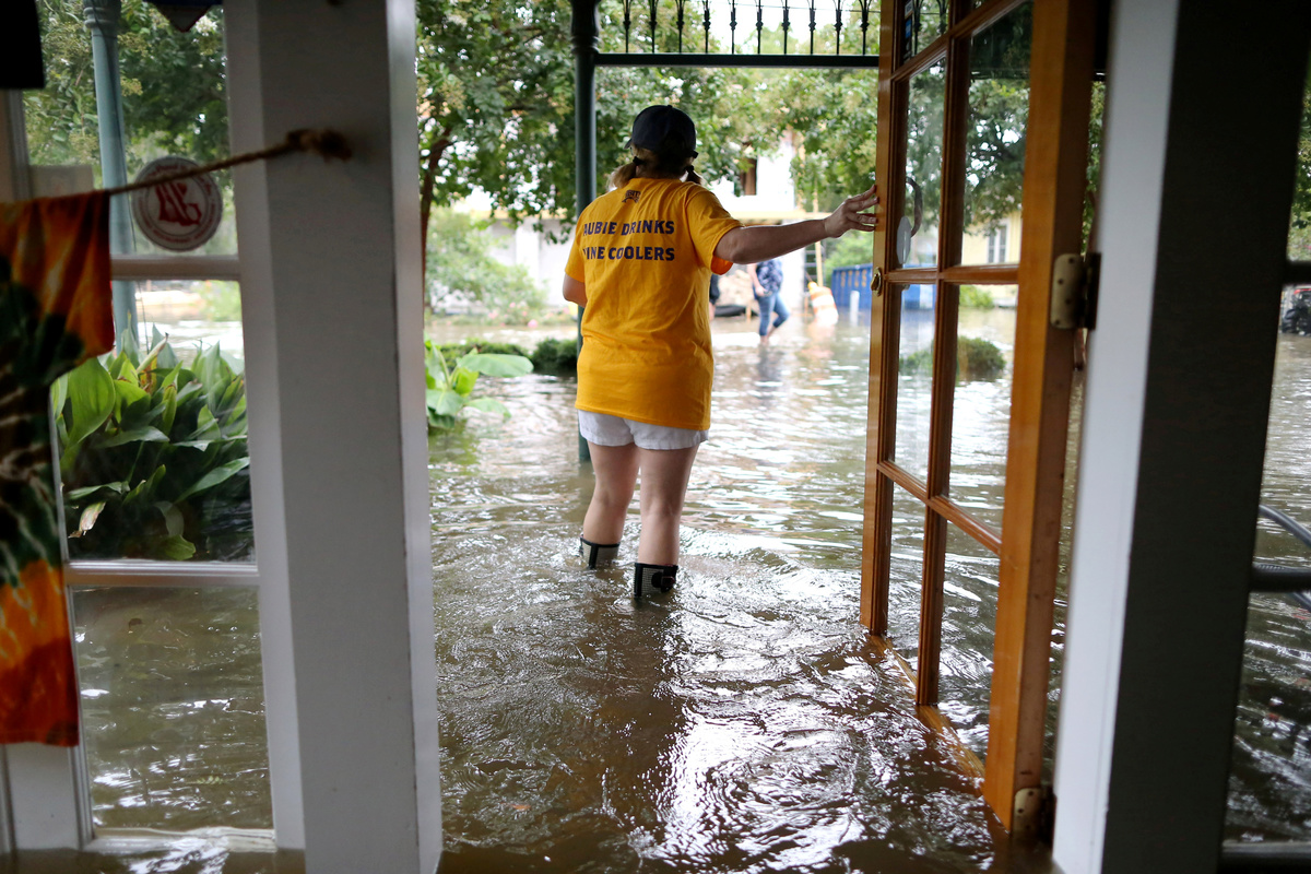 "I'm a local," she said, walking on a bike path on the levee with a beer in her hand. "I have a kayak, two dogs that both have life vests, and I live in an upstairs apartment, so if anything happens, we're good."