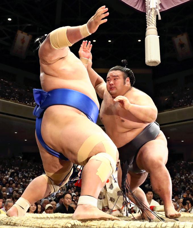 Sekiwake Tochinoshin, who is aiming to return to ozeki folloing his demotion after the previous tournament, earned his second win by easily forcing out No. 2 maegashira Daieisho. Tochinoshin needs at least 10 wins to get promoted again to ozeki.