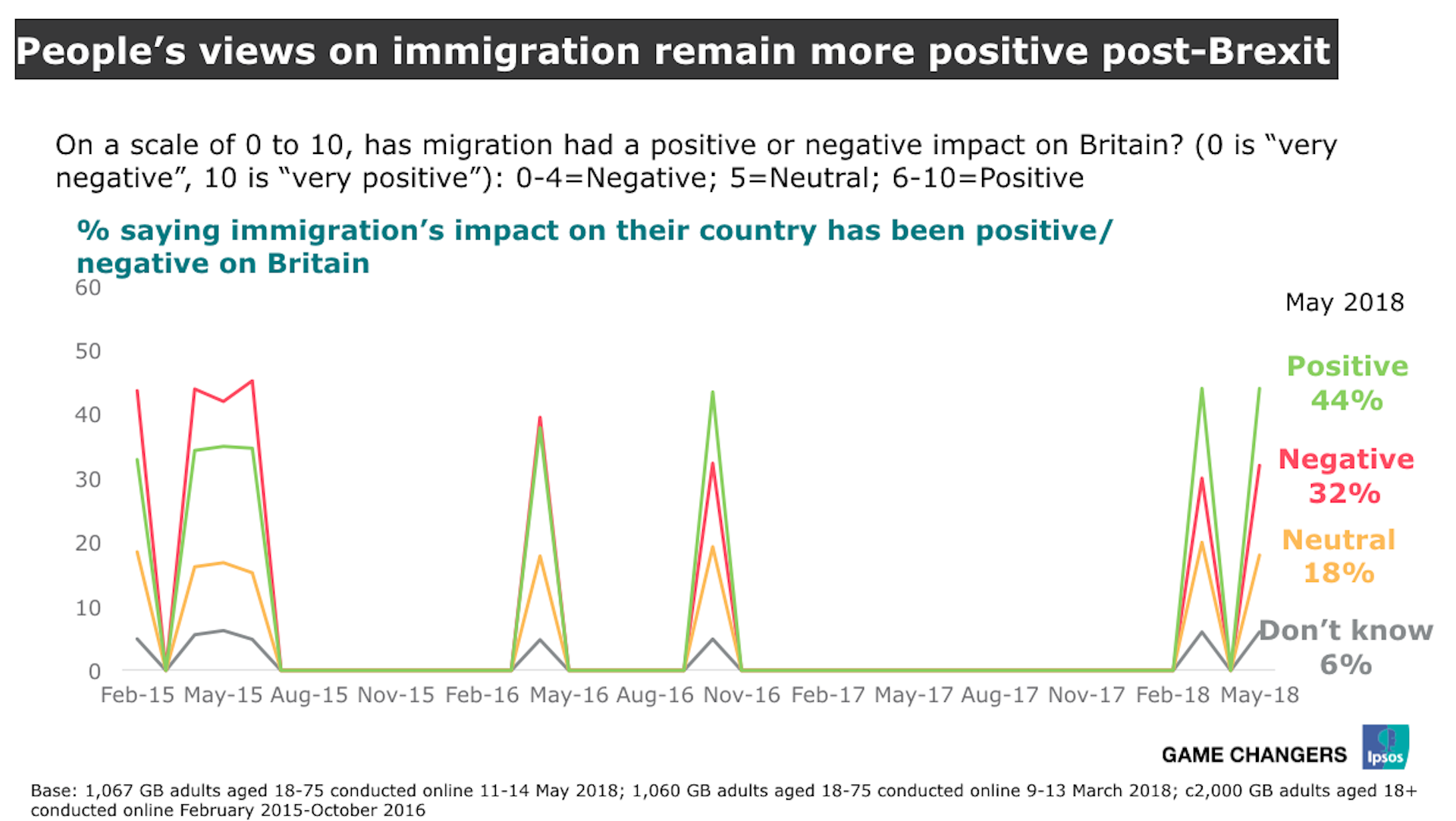 But Gove is right to say that people in Britain are now more positive about immigration, as shown by new polling released by Ipsos MORI, tracking attitudes towards immigration after the recent Windrush scandal.