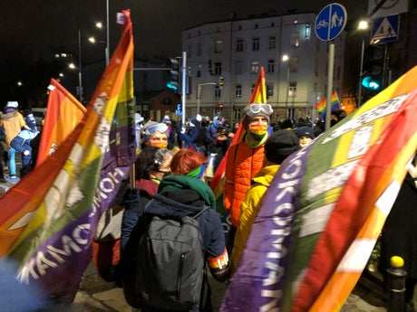 In Warsaw, protesters later marched through the city center to the ruling party's headquarters with signs of the leading “Women’s Strike” group and pro-LGBT rights rainbow flags. Like in last year's demonstrations, they defied Poland’s pandemic ban on gatherings.