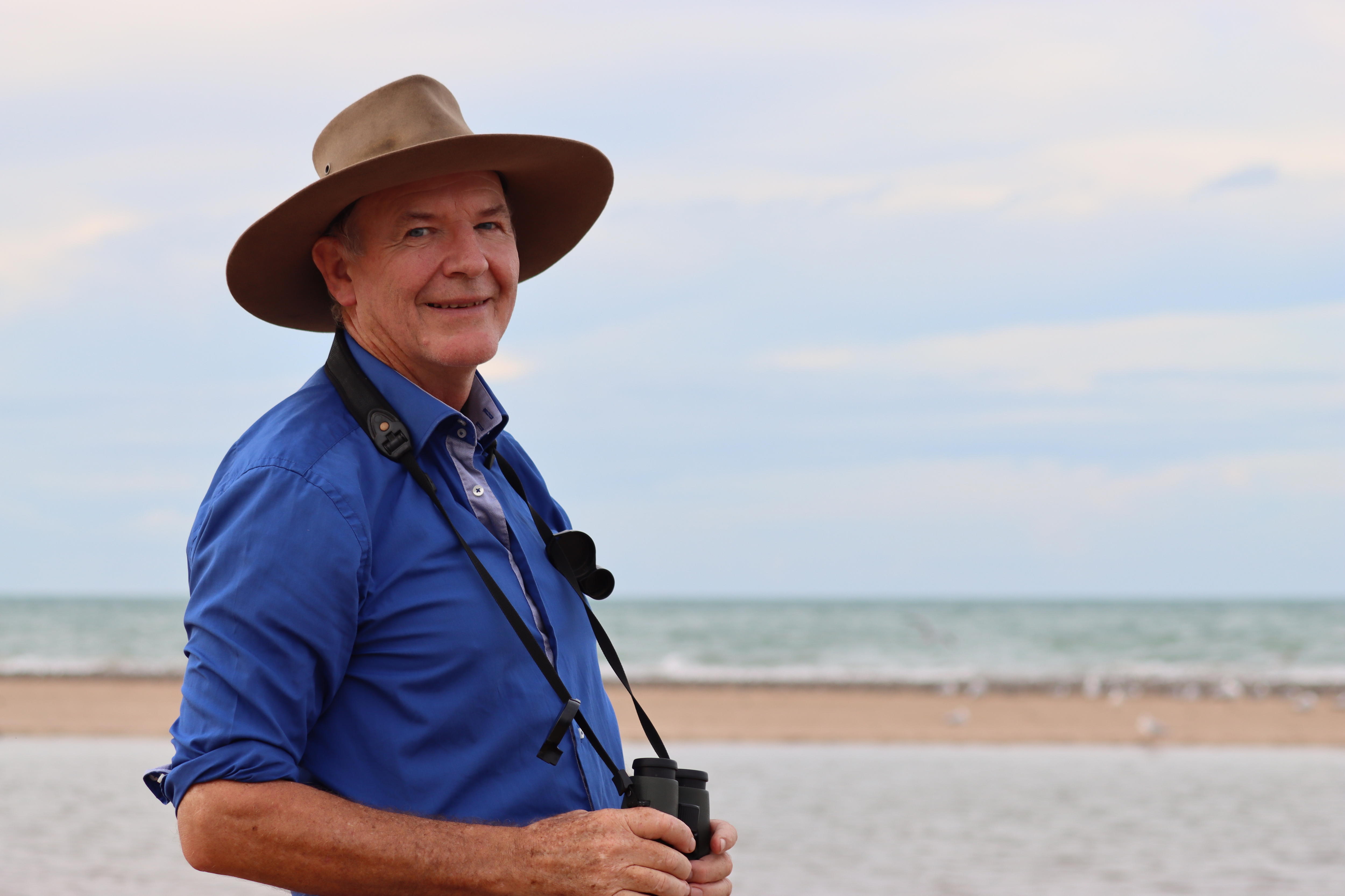 At sunset on Darwin's Lee Point Beach, thousands of shorebirds crowd together at the high tide line, and swirl up into a coordinated dance across the sky when disturbed.