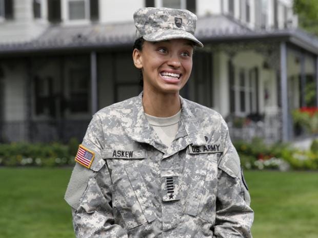 The 10 African Americans in the class include Simone Askew, of Fairfax, Virginia, who made headlines in August when she became the first black woman to serve as first captain of the 4,400-member Corps of Cadets at the US Military Academy — the highest position in the cadet chain of command at West Point. Askew, a senior, is majoring in international history, focused her undergraduate thesis on the use of rape as a tool of genocide and plans to study evidence-based social intervention at Oxford.