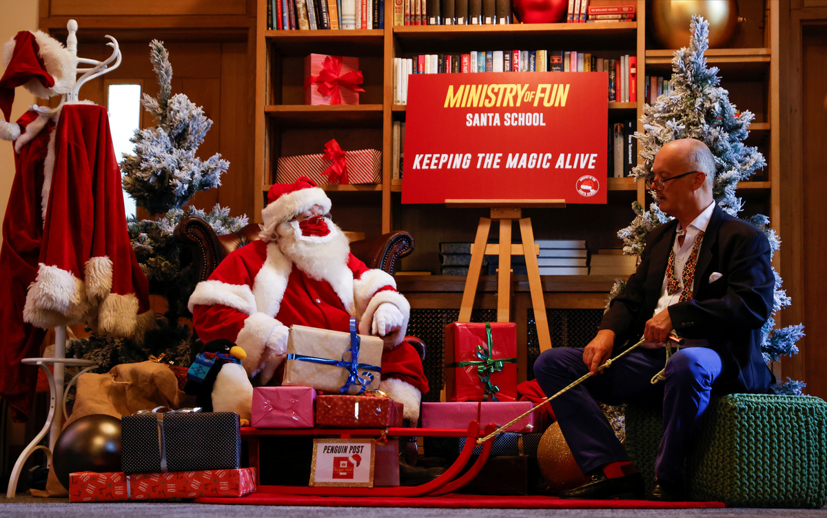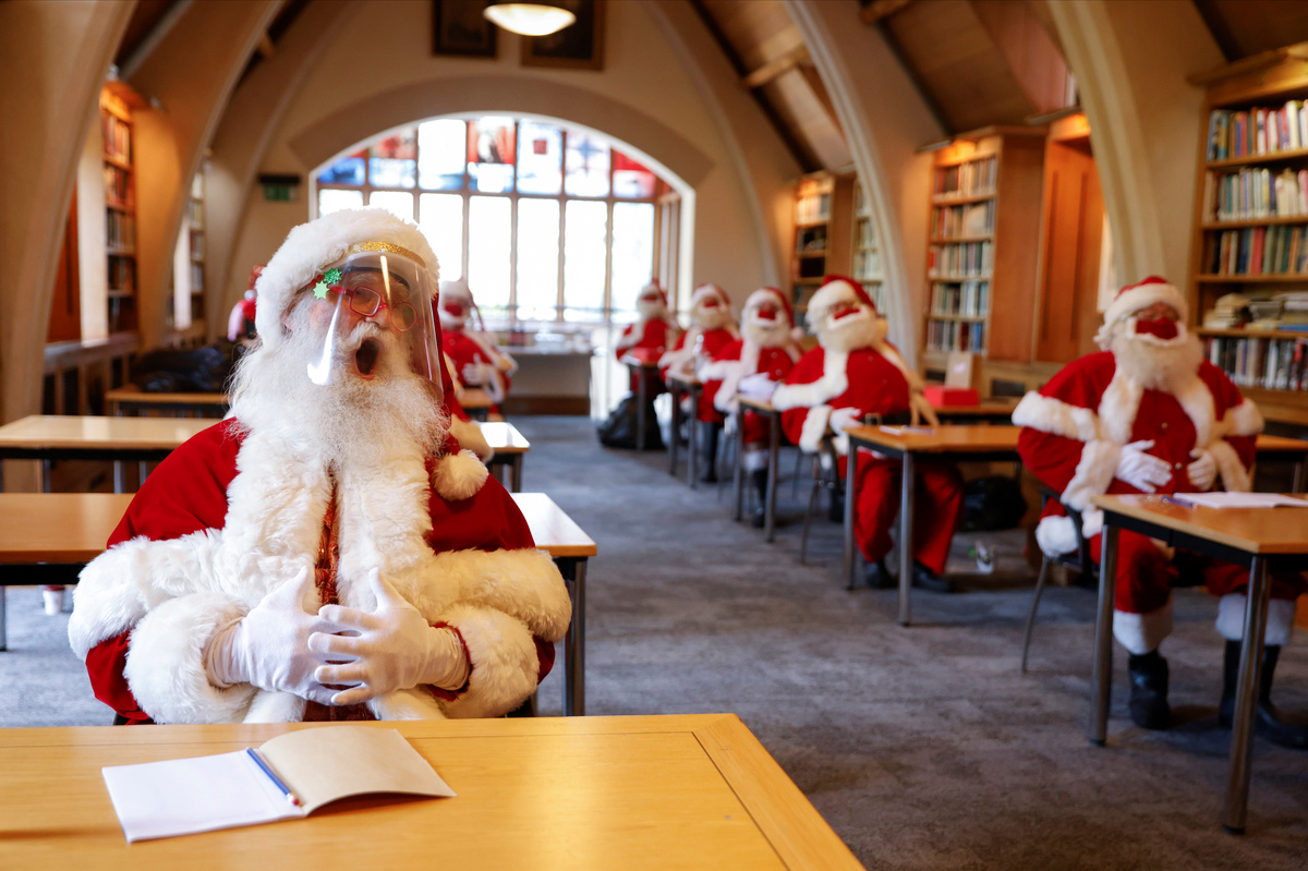 Trainee Santas in Britain are learning how to make traditional grottos COVID-safe this year, with festive red velvet masks, spaced seating and a contact-free transfer of gift to child.