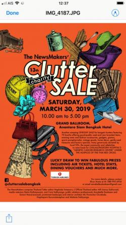 The much-anticipated 13th edition of the Clutter Sale for Charity will take place on Saturday March 30 from 10am- to 5pm, at the Grand Ballroom of Anantara Siam Bangkok Hotel, Ratchadamri Road.