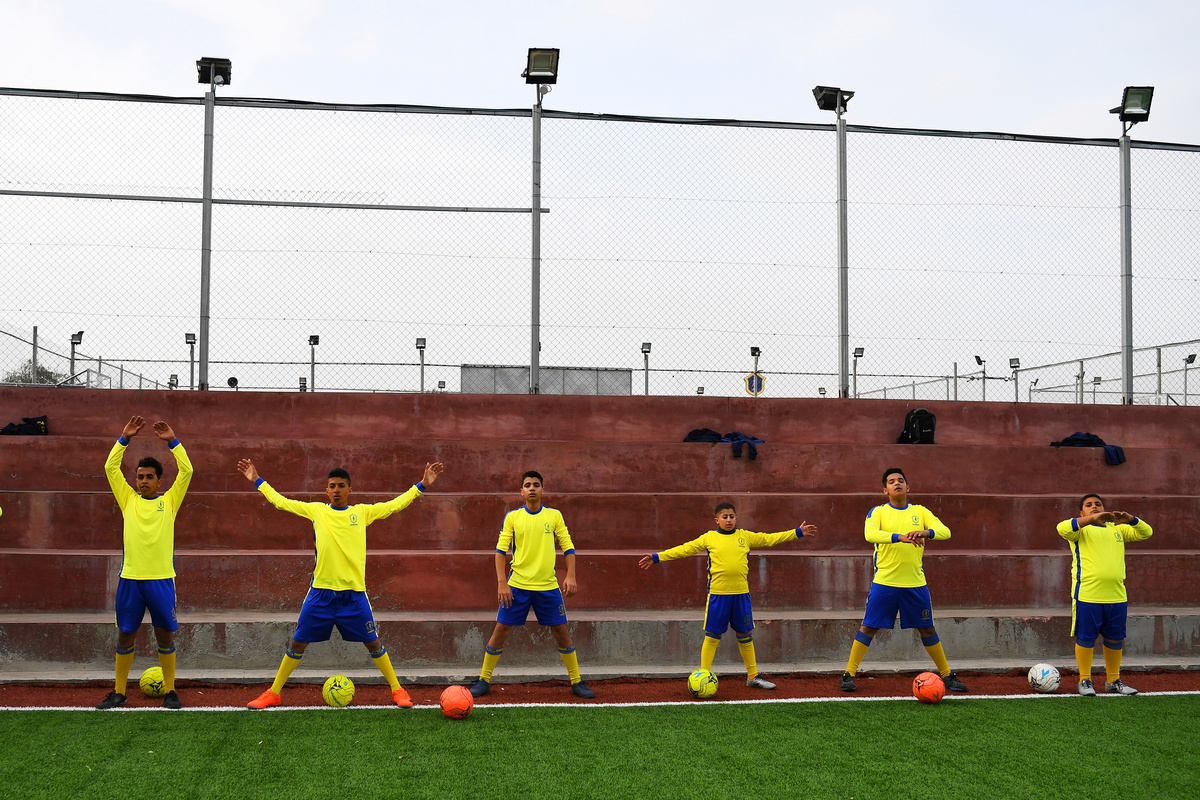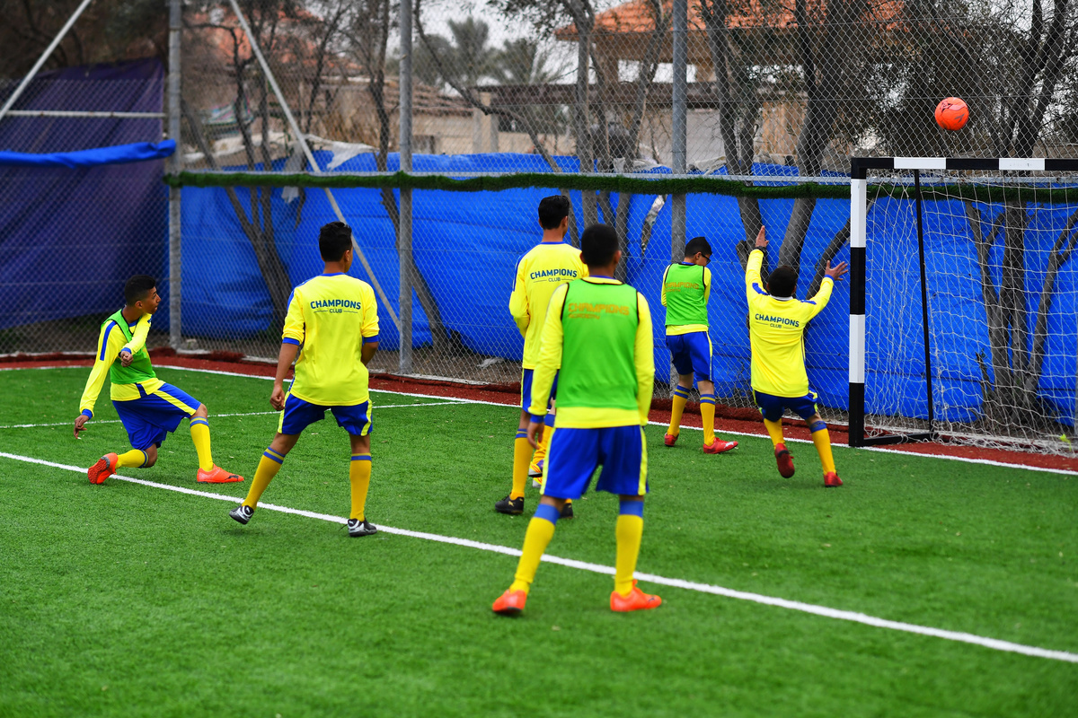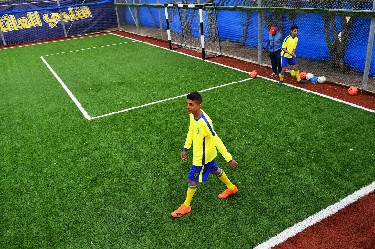 "I am happier now, I play and I made new friends," said al-Nabeeh. "They told us we can play, defy the disease and defeat it," he added as he hit the pitch for push-ups in his bright yellow and blue uniform.