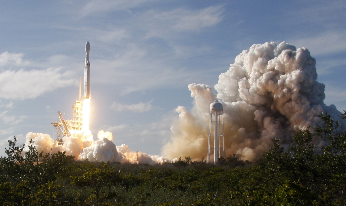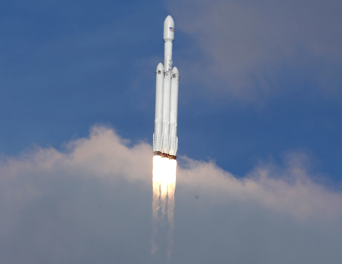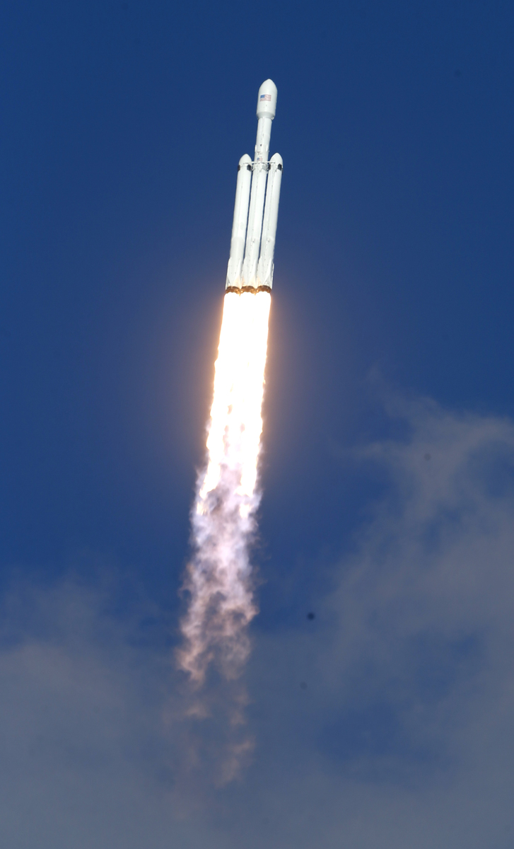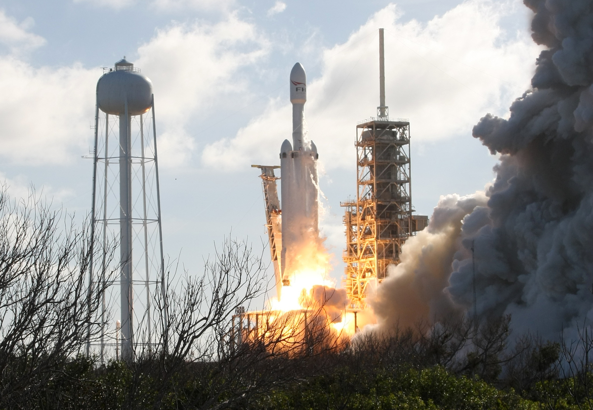 CAPE CANAVERAL, Fla. (Reuters) - The world's most powerful rocket, SpaceX's Falcon Heavy, roared into space through clear blue skies on its debut test flight on Tuesday from a Florida launch site in another milestone for billionaire entrepreneur Elon Musk's private rocket service.