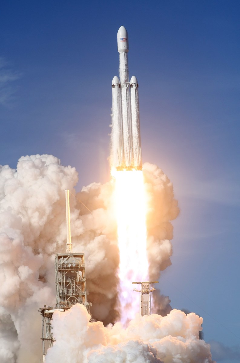 Propelled by 27 rocket engines, the Heavy packs more than 5 million pounds of thrust at launch, roughly three times the force of the Falcon 9 booster rocket that until now has been the workhorse of the SpaceX fleet. The new rocket is essentially constructed from three Falcon 9s bolted together side by side.