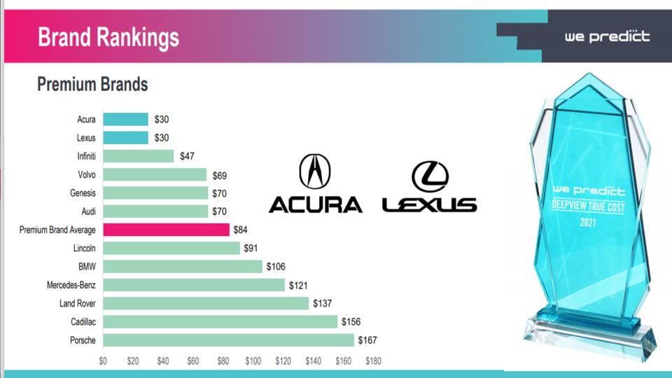 Unlike some other more well-known and publicized vehicle quality studies, the Deepview True Cost Report by Ann Arbor, Mich.-based data company We Predict does not use customer surveys regarding problems, real or perceived. Rather, the report looked at more than 801,000 vehicles across 306 models, with results based on 1.6 million service or repair orders that totaled more than $128 million in parts and $254 million in labor costs—both warranty and those paid for by the customer over the first three months of ownership.