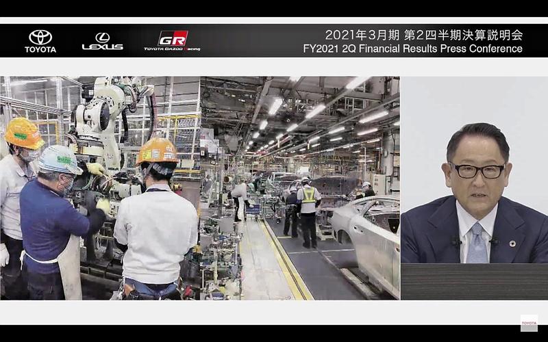 "There were six months of hard work. Toyota is getting stronger bit by bit," company President Akio Toyoda said at an online news conference about the company's efforts over the past half-year.