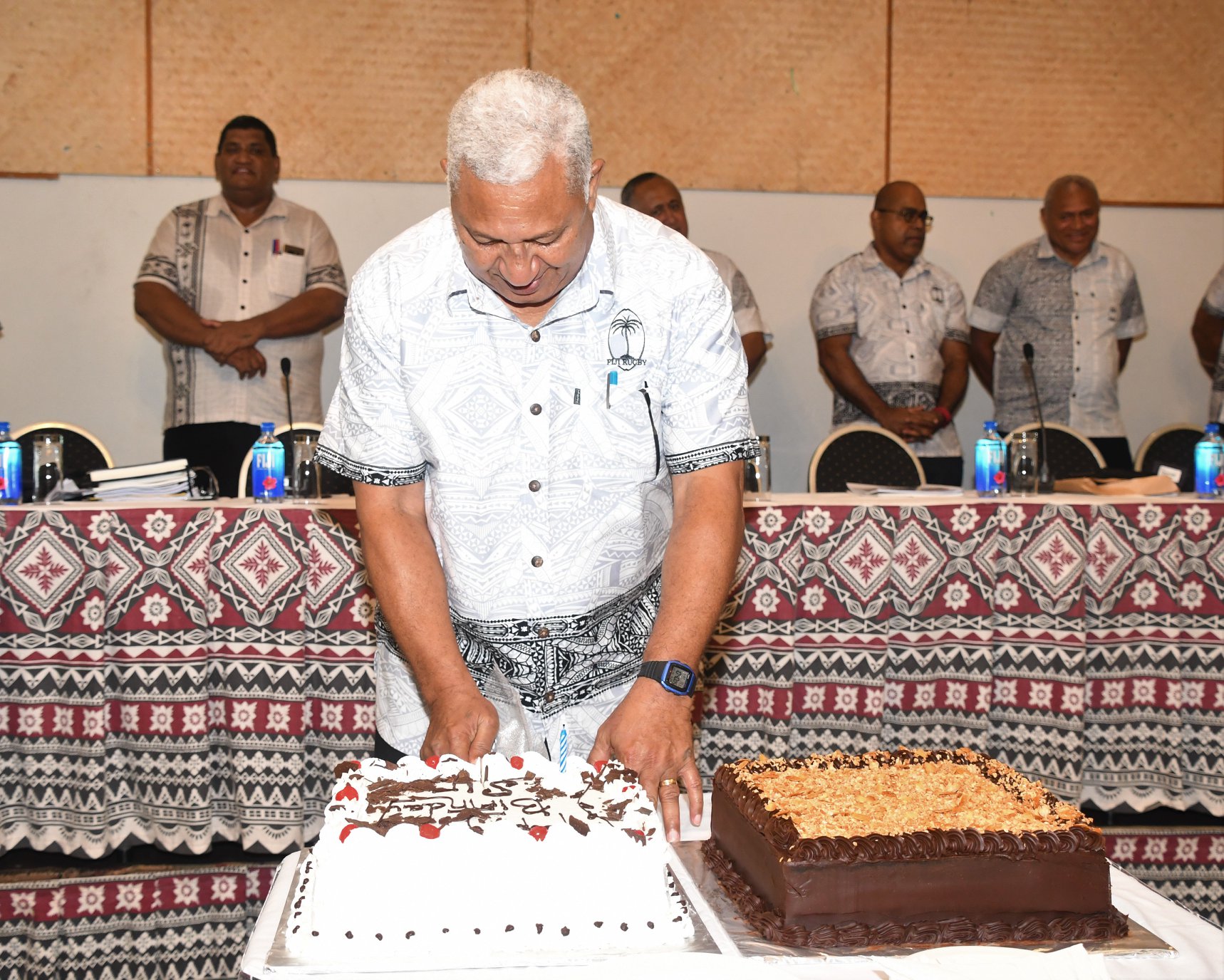 Mr Bainimarama was re-elected president of FRU unopposed at the 2019 AGM, where the board also celebrated his 65th birthday.