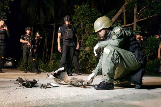 At the scene, Capt Santi Ketsipongsa, commander of the Paramilitary Marine Regiment, said authorities identified a group of suspects who had buried the bombs there, possibly for a planned attack, and they were being hunted.