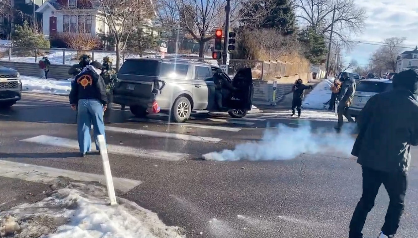 After the agents deployed gas, one of them was seen in the footage hitting another on the shoulder, as though to signal it was time to leave. The agents left without making any arrests.