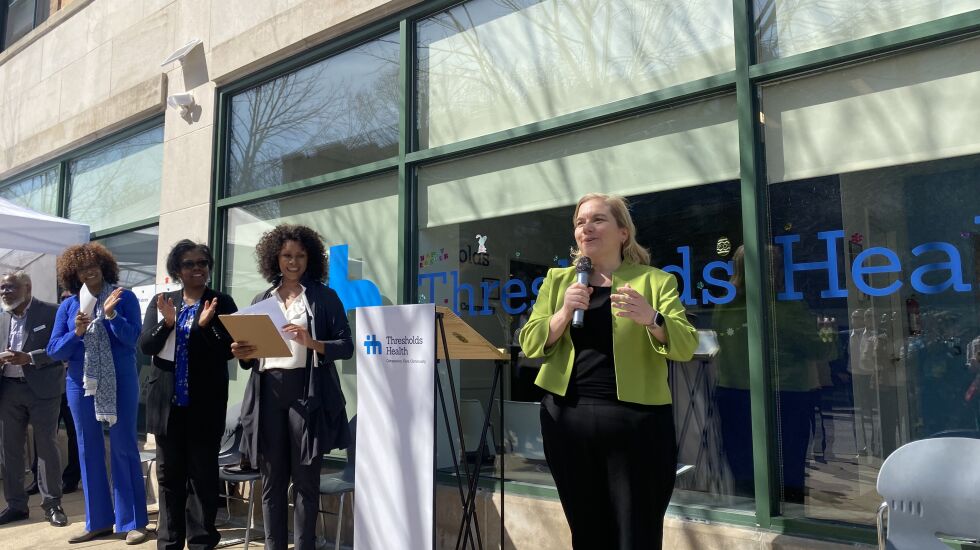 Harris is a founding board member of the clinic, called Thresholds Health, and was among a crowd of staff, local residents and city officials, including Commissioner Dr. Allison Arwady of Chicago’s Department of Public Health, celebrating on April 11.