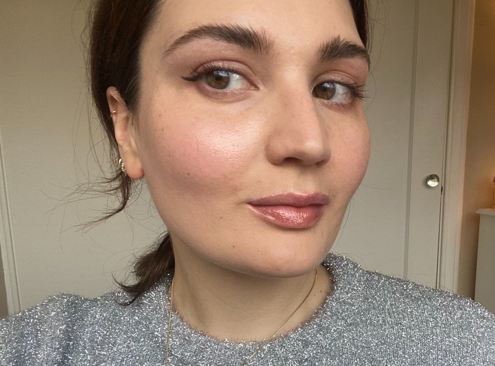 Start with a glowing base that also offers good coverage to hide redness like Sculpted by Aimee Second Skin Dewy Finish (£25), massaging it onto skin with fingertips for a seamless finish. Next, add dew. Nothing does the job quite as well as Kevyn Aucoin Glass Glow Face Illuminator (£26). Pop some on your cheeks, your lids, and maybe a little on your cupid’s bow.
