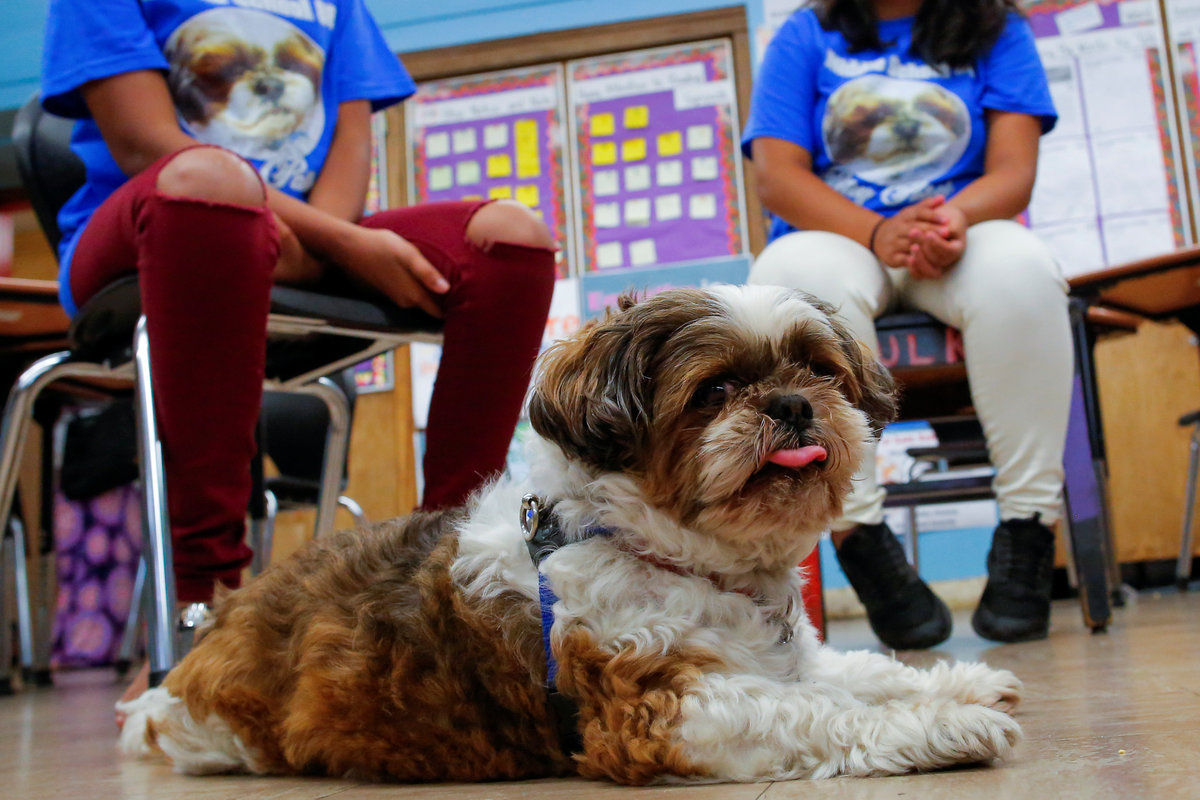 (Reuters) - When distressed students at Middle School 88 in Brooklyn end up in the principal's office, Petey Parker often totters over, tail wagging, to comfort them.