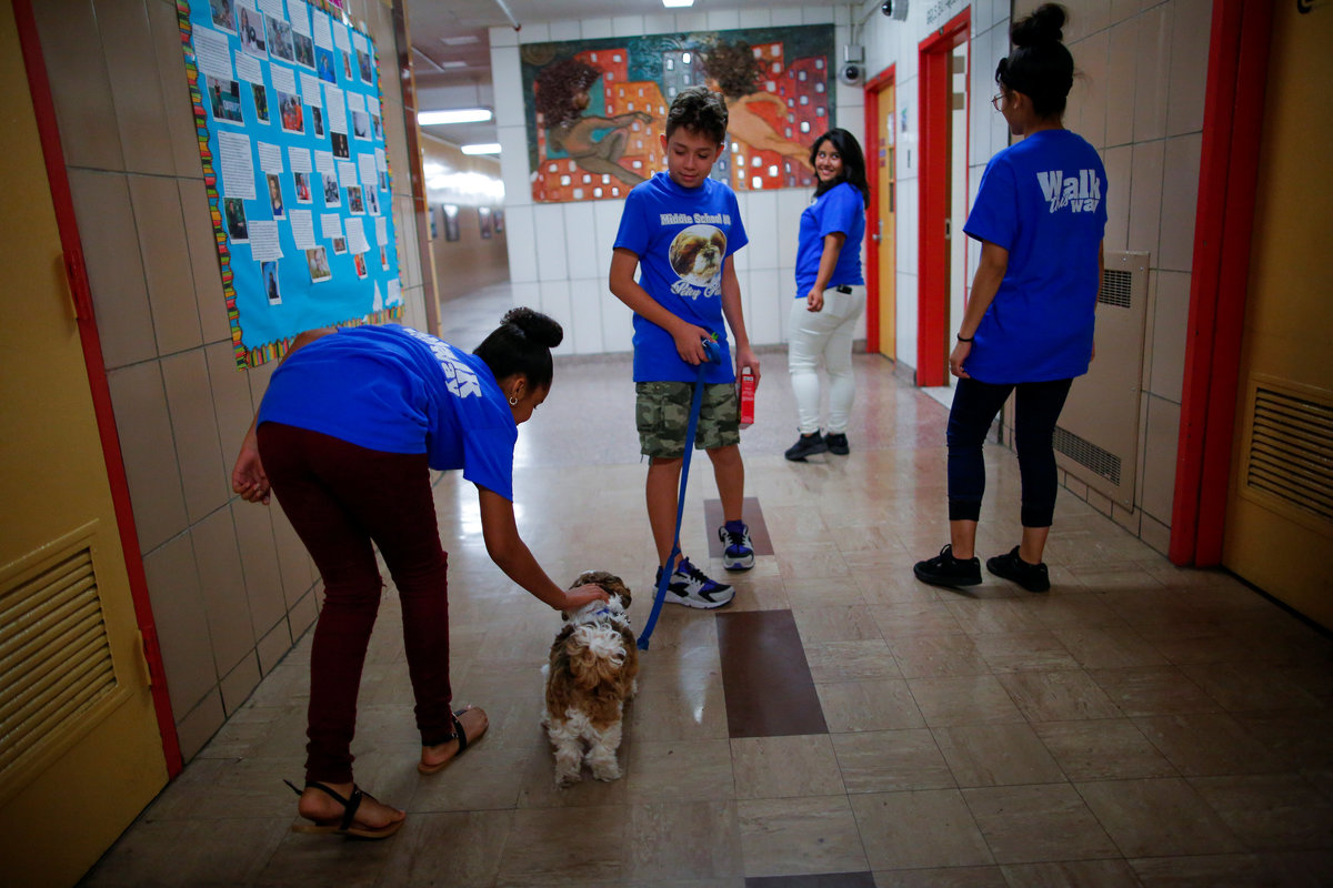 The MS 88 principal said Petey has had particular effect on students with special needs and disabilities, including those in wheelchairs.