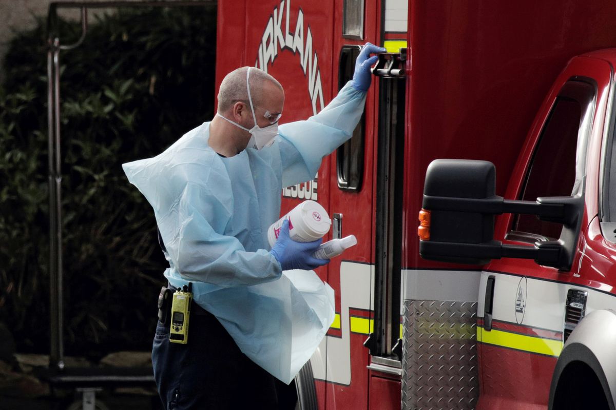 A medic prepares a stretcher to transfer a patient into an ambulance at the Life Care Center of Kirkland, the long-term care facility linked to several confirmed coronavirus cases in the state, in Kirkland, Washington, U.S. March 5, 2020. REUTERS/David Ryder
