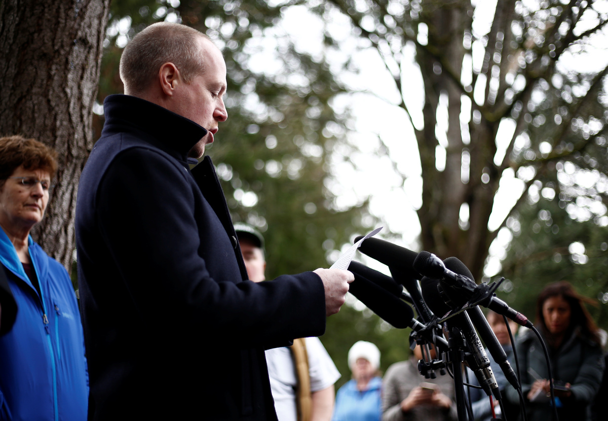 Curtis Luterman and Kevin Connolly, who both have a family member at the Life Care Center of Kirkland, speak about the confusion and differing information they've received from the long-term care facility linked to several confirmed coronavirus cases, in Kirkland, Washington, U.S. March 5, 2020. REUTERS/Lindsey Wasson