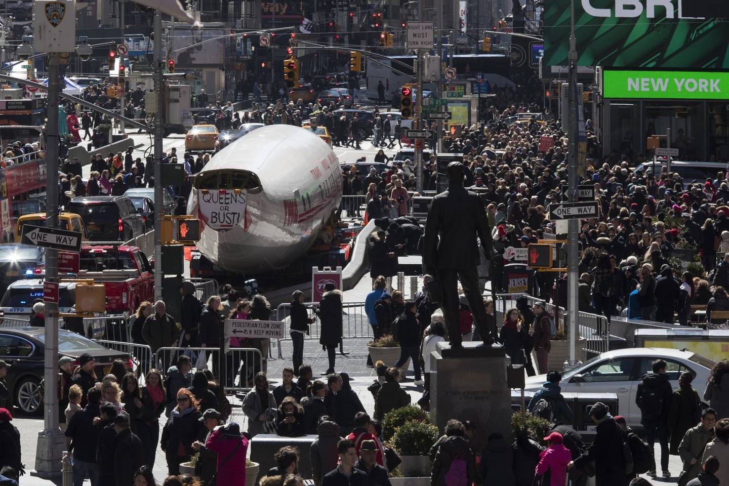 It was trucked Friday night from Kennedy Airport to Times Square, where the same model plane was featured in an eight-story billboard in the late 1950s.