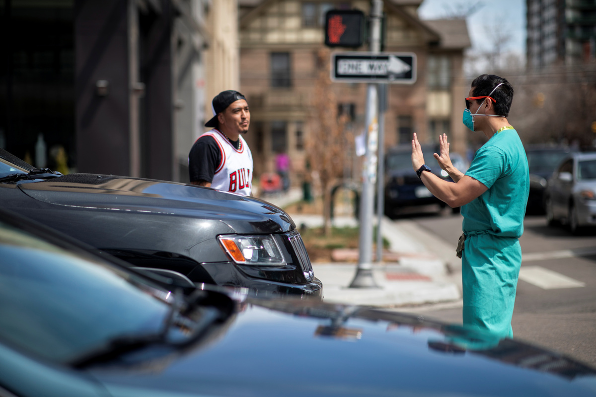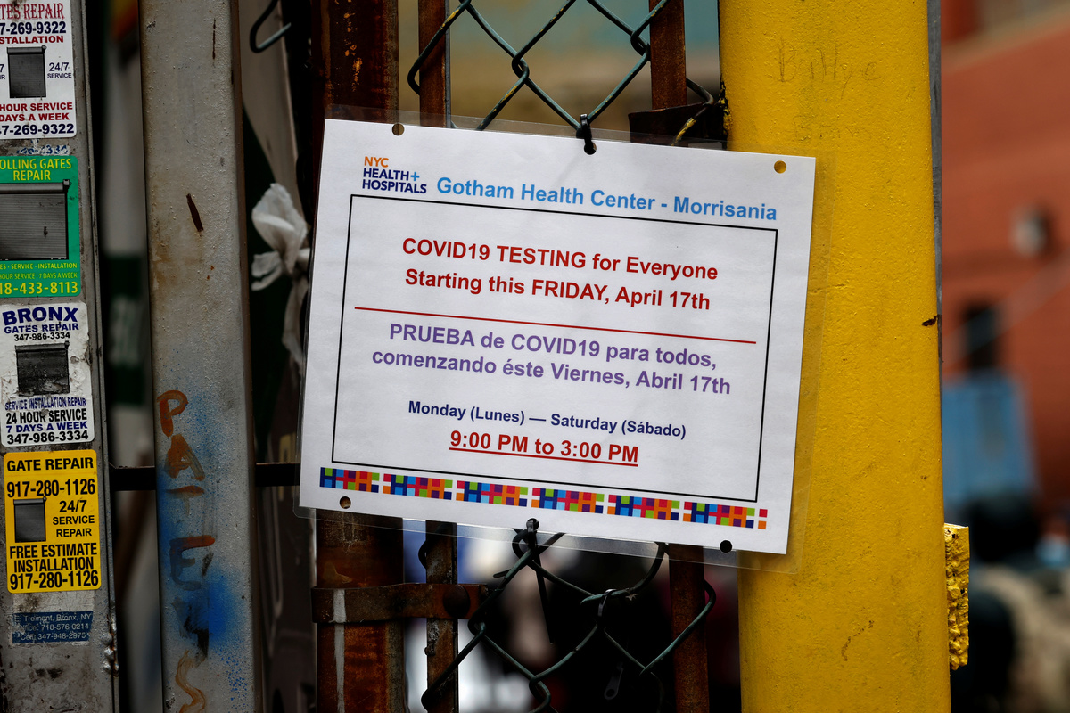 Residents wearing protective face masks carry boxes of groceries distributed by the FSC 101 Engineering Battalion of the Massachusetts Army National Guard at a pop-up food pantry amid the coronavirus disease (COVID-19) outbreak in Chelsea, Massachusetts, U.S., April 20, 2020. REUTERS/Brian SnyderA man looks out of his car during a traffic stoppage, during the outbreak of the coronavirus disease (COVID-19) in New York City, New York, U.S., April 20, 2020. REUTERS/Andrew Kelly Demonstrators gather to protest against the state's extended stay-at-home order to help slow the spread of the coronavirus disease (COVID-19) in Harrisburg, Pennsylvania, U.S., April 20, 2020. REUTERS/Rachel WisniewskiPeople move through a nearly empty Fulton subway station during the morning rush, during the outbreak of the coronavirus disease (COVID-19) in New York City, New York, U.S., April 20, 2020. REUTERS/Andrew Kelly Demonstrators gather to protest against the state's extended stay-at-home order to help slow the spread of the coronavirus disease (COVID-19) in Harrisburg, Pennsylvania, U.S., April 20, 2020. REUTERS/Rachel WisniewskiA resident wearing a protective face mask waits in a line around the block for groceries distributed by the FSC 101 Engineering Battalion of the Massachusetts Army National Guard at a pop-up food pantry amid the coronavirus disease (COVID-19) outbreak in Chelsea, Massachusetts, U.S., April 20, 2020. REUTERS/Brian SnyderPeople wearing protective face masks wait in line outside NYC Health + Hospitals/Gotham Health Morrisania neighborhood health center, one of New York City's new walk-in COVID-19 testing centers, during the outbreak of the coronavirus disease (COVID-19) in the Bronx borough of New York City, New York, U.S., April 20, 2020. REUTERS/Mike SegarDemonstrators gather to protest against the state's extended stay-at-home order to help slow the spread of the coronavirus disease (COVID-19) in Harrisburg, Pennsylvania, U.S., April 20, 2020. REUTERS/Rachel WisniewskiA nearly empty Oculus transportation hub is seen at the World Trade Center in lower Manhattan, during the outbreak of the coronavirus disease (COVID-19) in New York City, New York, U.S., April 20, 2020. REUTERS/Andrew KellyA sign is seen outside NYC Health + Hospitals/Gotham Health Morrisania neighborhood health center, one of New York City's new walk-in COVID-19 testing centers, during the outbreak of the coronavirus disease (COVID-19) in the Bronx borough of New York City, New York, U.S., April 20, 2020. REUTERS/Mike SegarPeople wearing protective face masks wait on a curb outside NYC Health + Hospitals/Gotham Health Morrisania neighborhood health center, one of New York City's new walk-in COVID-19 testing centers, during the outbreak of the coronavirus disease (COVID-19) in the Bronx borough of New York City, New York, U.S., April 20, 2020. REUTERS/Mike SegarHealth care workers stand in the street in counter-protest to hundreds of people who gathered at the State Capitol to demand the stay-at-home order be lifted in Denver, Colorado, U.S. April 19, 2020. REUTERS/Alyson McClaran FILE PHOTO: New York City Mayor Bill De Blasio speaks to the media during a press conference in temporary hospital located at the USTA Billie Jean King National Tennis Center as the outbreak of the coronavirus disease (COVID-19) continues in the Queens borough of New York City, New York, U.S., April 10, 2020. REUTERS/Eduardo Munoz/File PhotoFILE PHOTO: Times Square stands relatively empty of pedestrians and traffic as the outbreak of the coronavirus disease (COVID-19) continues in the Manhattan borough of New York, U.S., April 14, 2020. REUTERS/Lucas Jackson