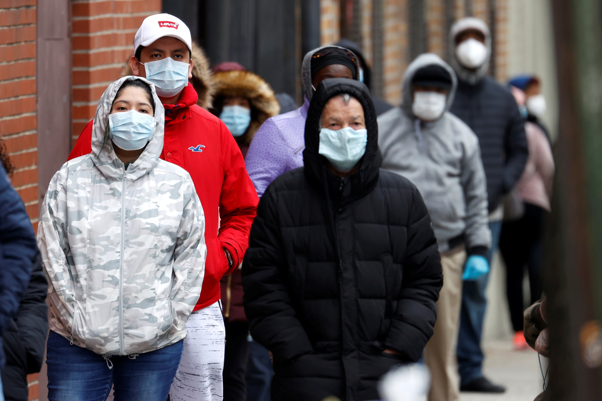 People wearing protective face masks wait in line outside NYC Health + Hospitals/Gotham Health Morrisania neighborhood health center, one of New York City's new walk-in COVID-19 testing centers, during the outbreak of the coronavirus disease (COVID-19) in the Bronx borough of New York City, New York, U.S., April 20, 2020. REUTERS/Mike Segar