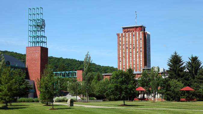 Binghamton is located in the Southern Tier region of New York, near the Pennsylvania border. Its median household income is the lowest among the cities in this list. The average cost of living here pencils out to just over $3,000 a month.
