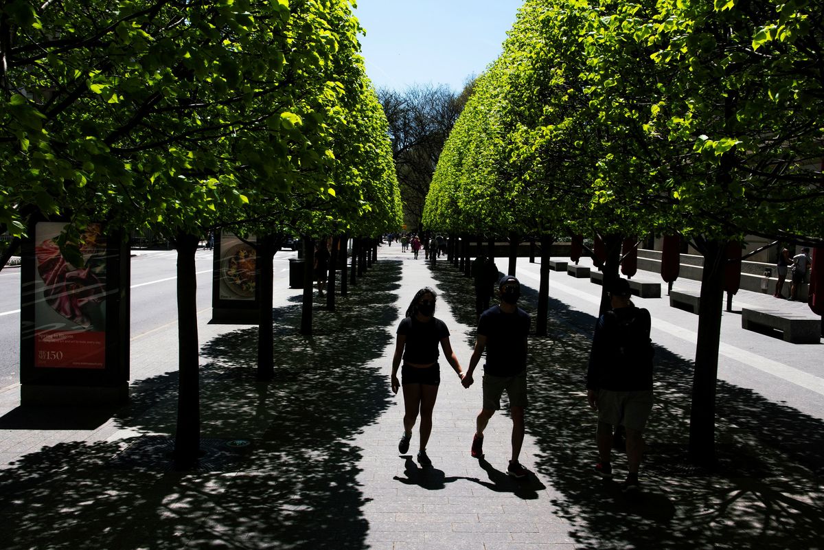 People visit the Liberty State Park after many New Jersey Parks set to re-open during the outbreak of the coronavirus disease (COVID-19) in Jersey City, New Jersey, U.S., May 2, 2020. REUTERS/Eduardo Munoz